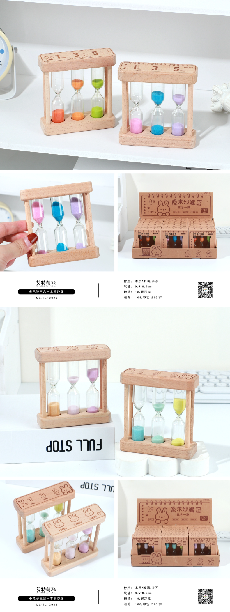 Timed Wooden Sandglass with Anti-Drop Function for 1-3 Minutes