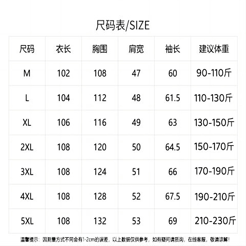 | 5XL | ¥258.0 | 99126 piece available |