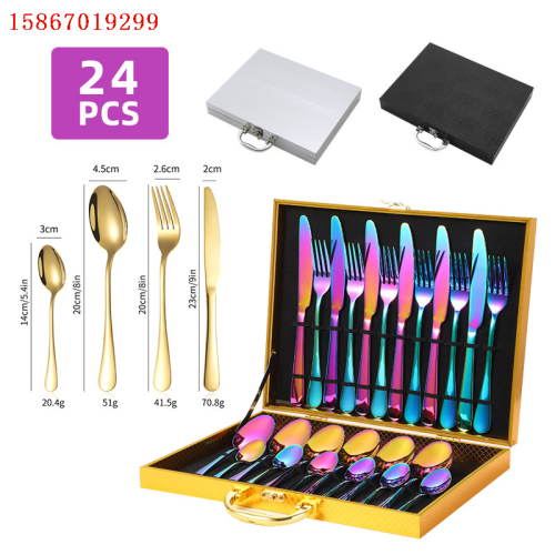 cross-border stainless steel knife, fork and spoon 24-piece set titanium-plated western tableware gift box amazon foreign trade gifts 中文版