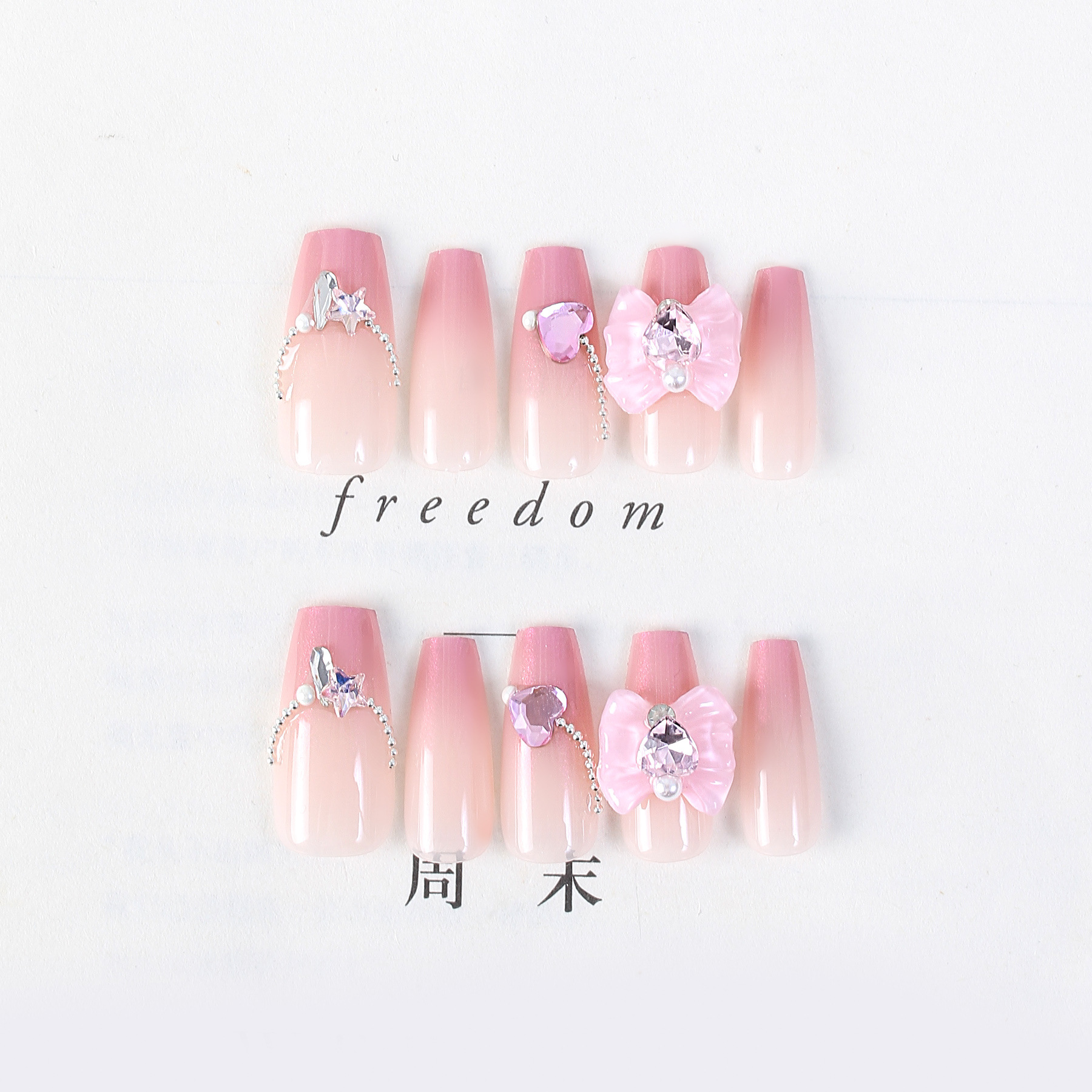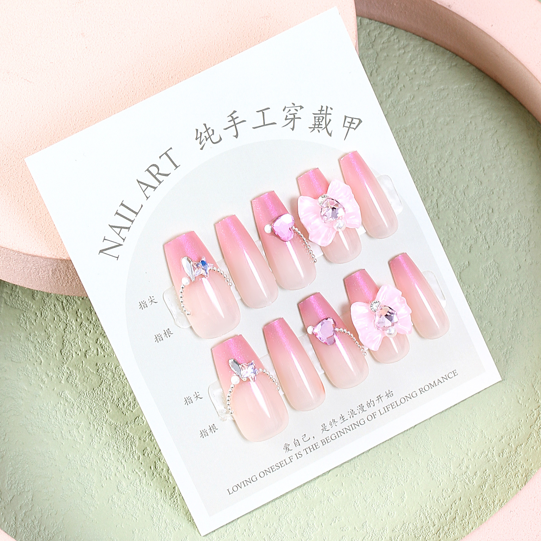 Split Size Handmade Long Ladder Nude Retro Aurora Gradient Wear Nail Sweet Cool Fake Nails Nail Stickers Nail Tip