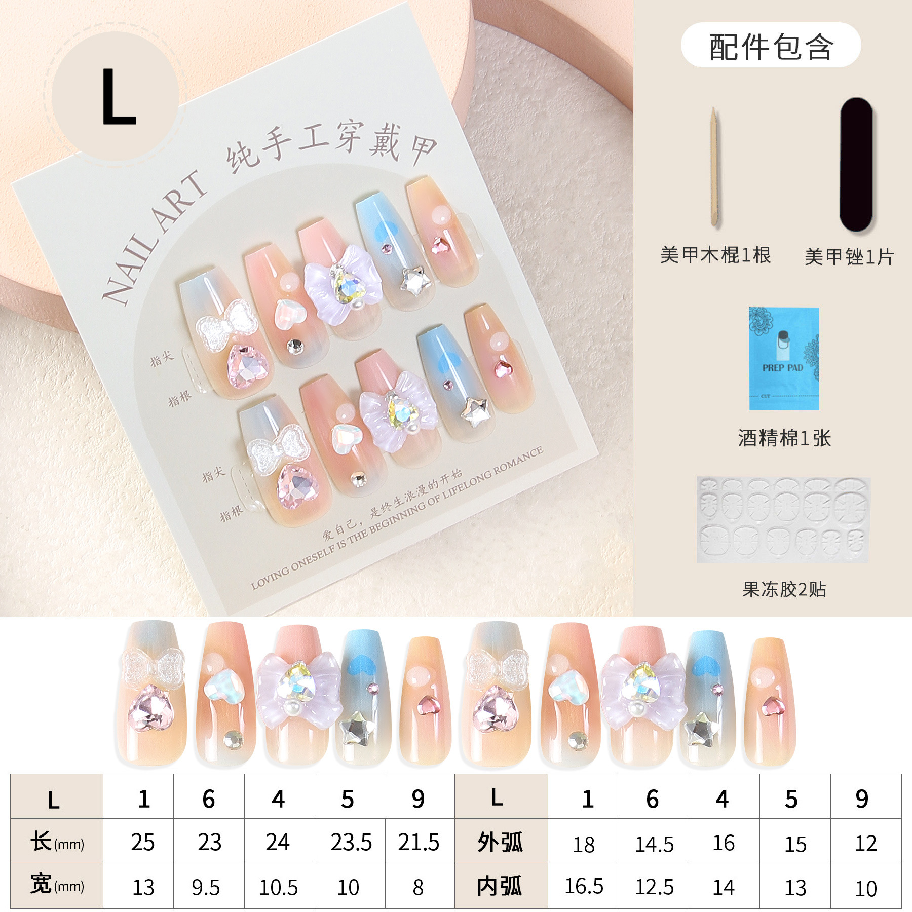 Xiaohongshu Handmade Long Ladder Ballet Wear Nail Division Macaron Gradient Color Fake Nail Patch with Kit