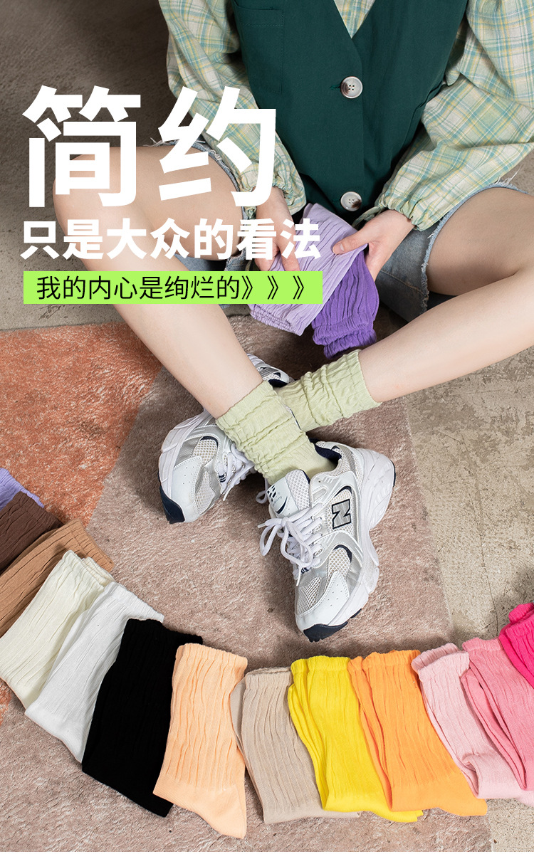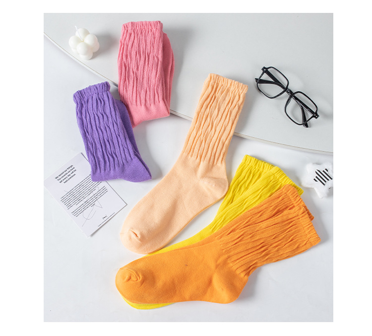 Socks Female Online Influencer Dopamine Bunching Socks Ins Trendy Candy Color Tube Socks Solid Color Twisted Cotton Socks Fashion Women's Socks