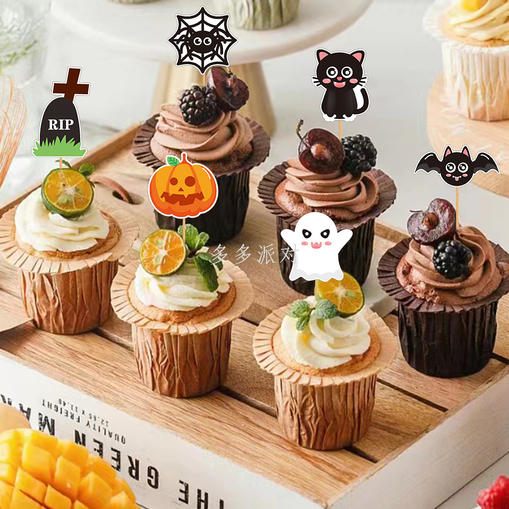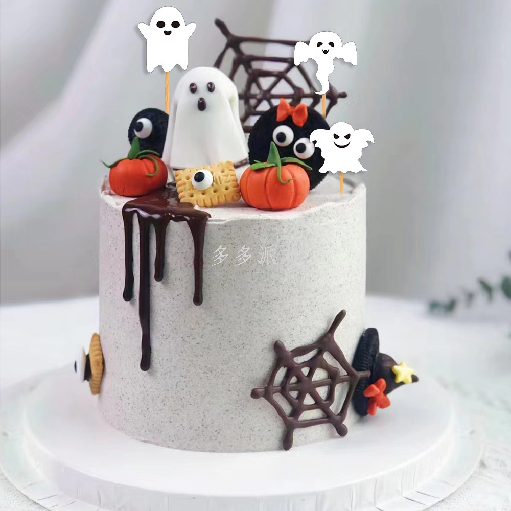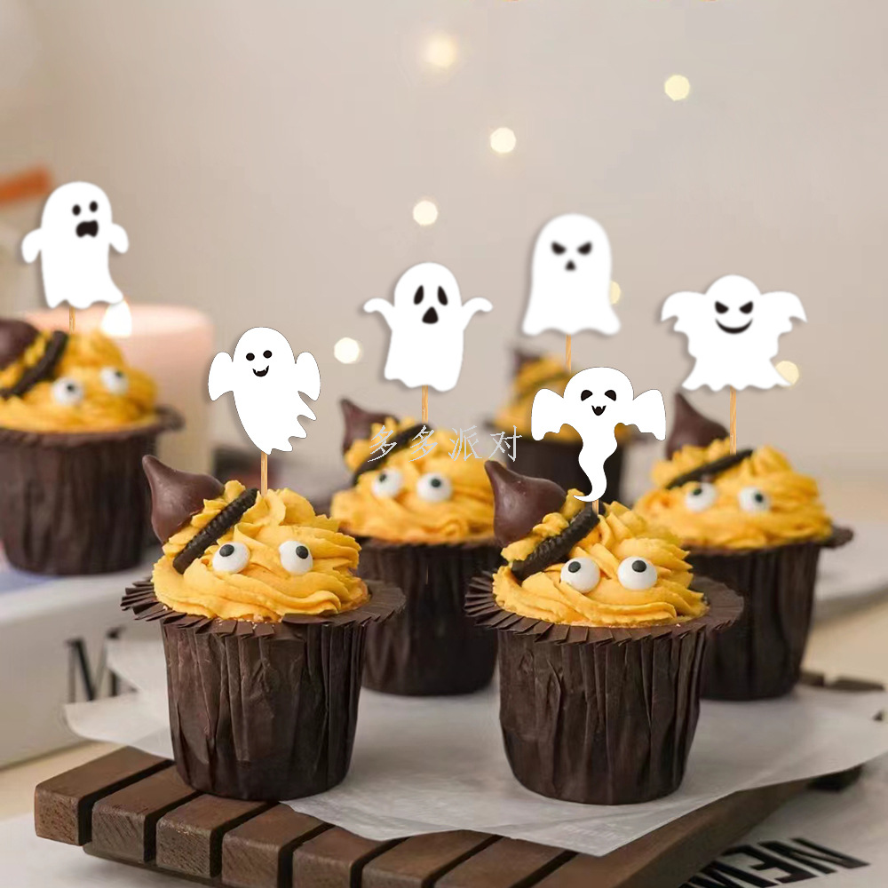 2023 cross-border new arrival halloween cake decoration ghost festival funny atmosphere ghost cup cake plug-in inserts 中文版