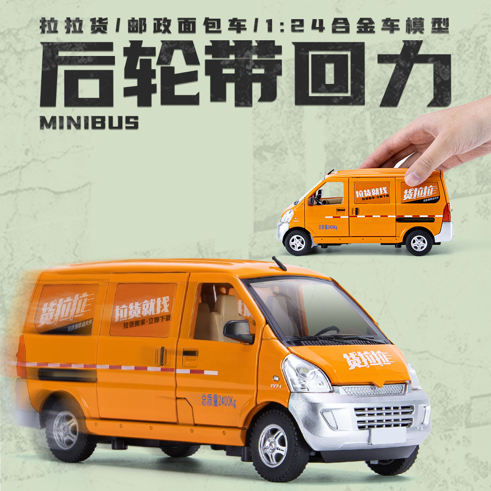 Genuine Goods Authorization 1:24 Wuling Rongguang Cargo Lala Post Alloy Car Model Sound and Light Pull Back Door Opening Children's Toys