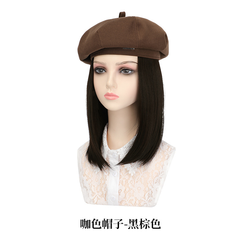 black beret + black brown wig