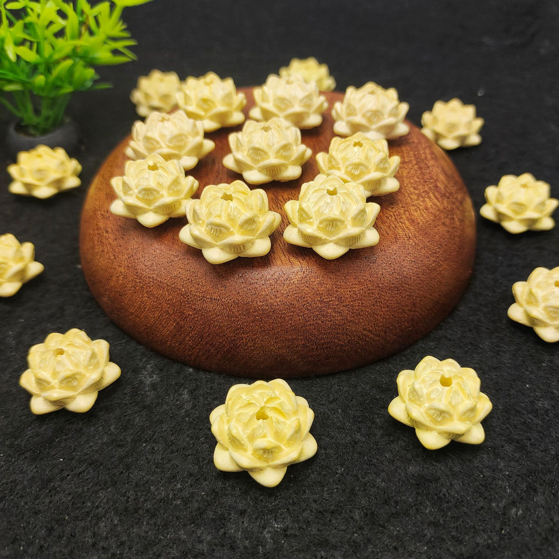 品名:黄杨木雕刻莲花