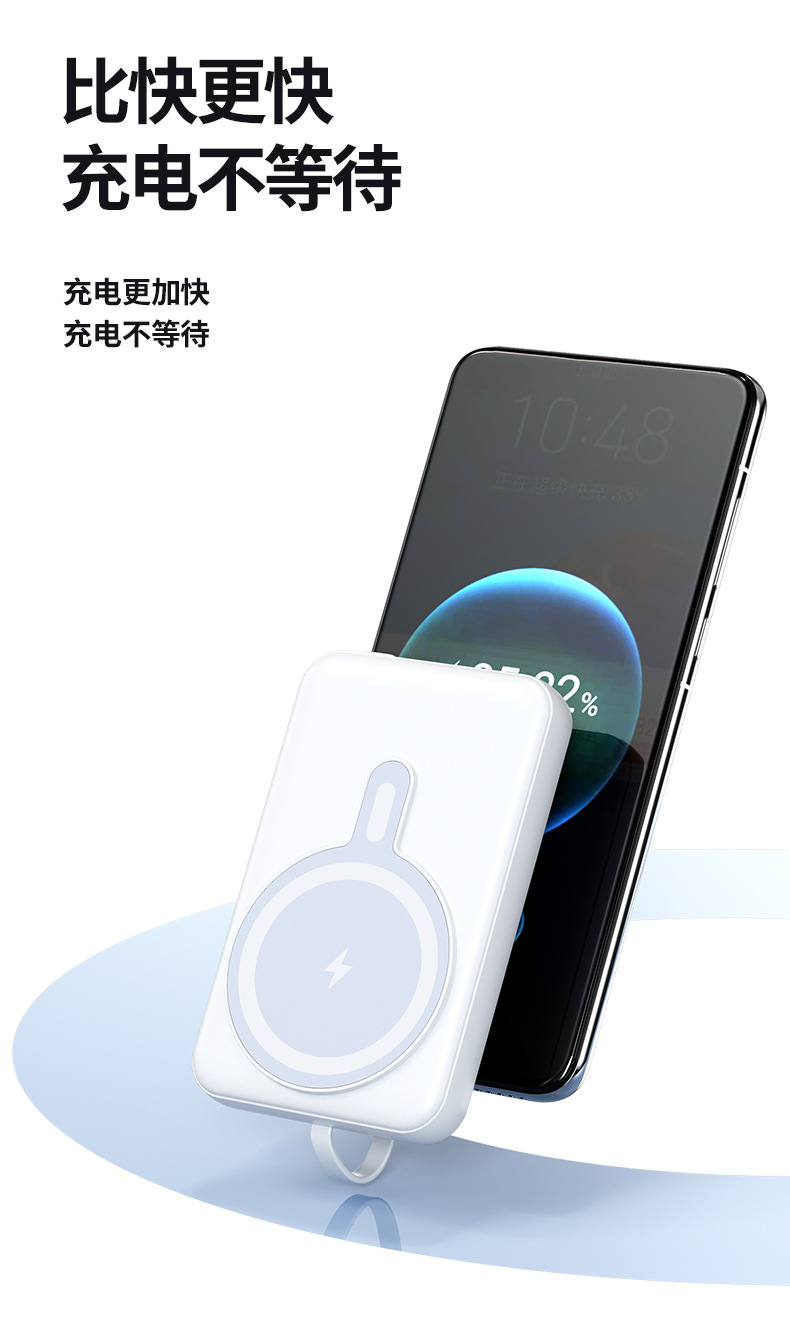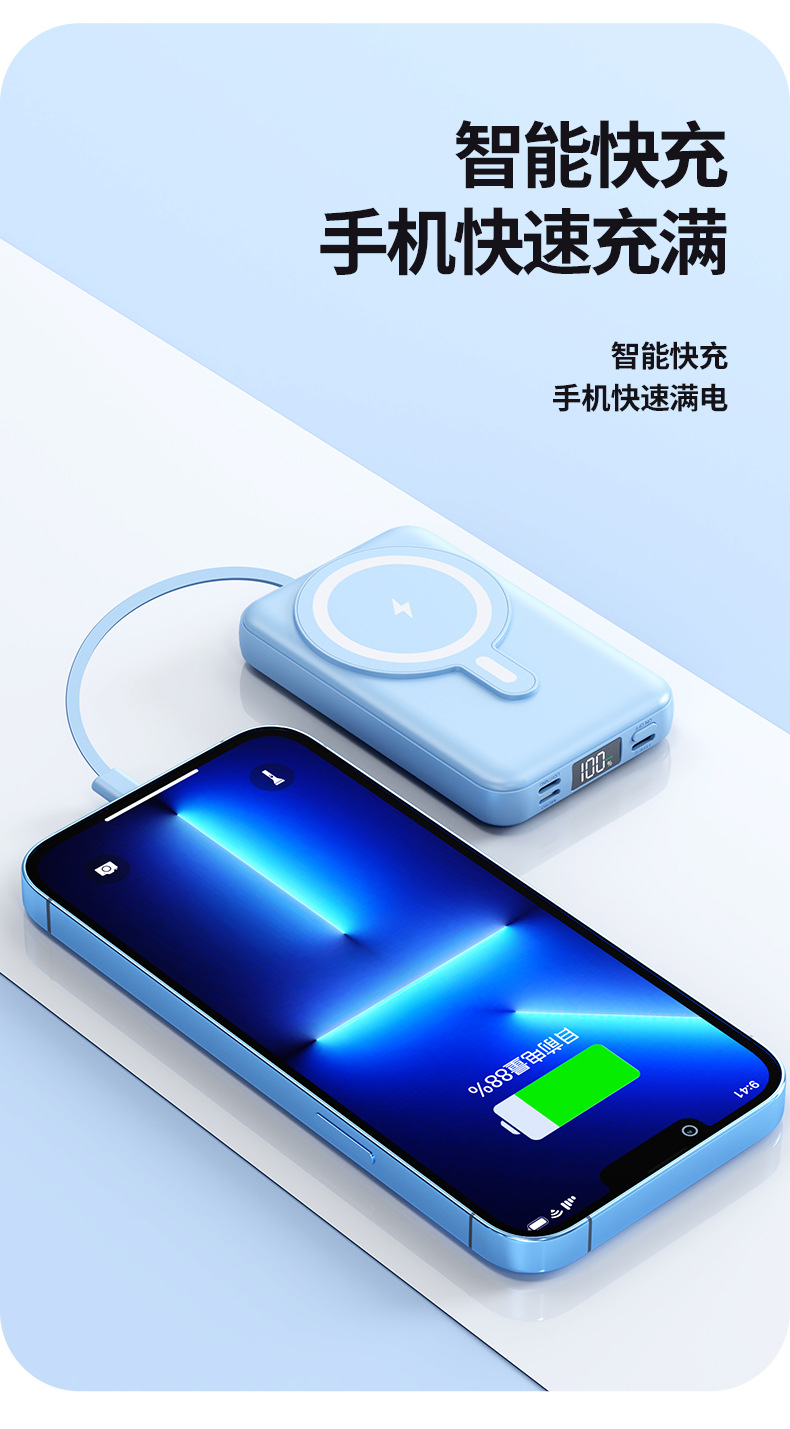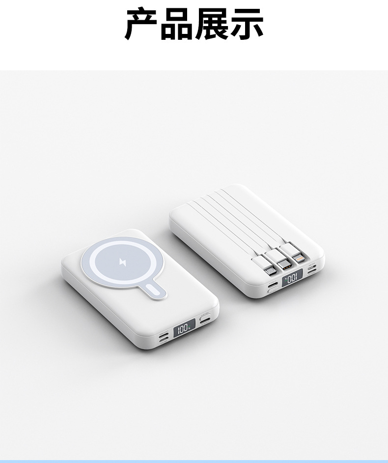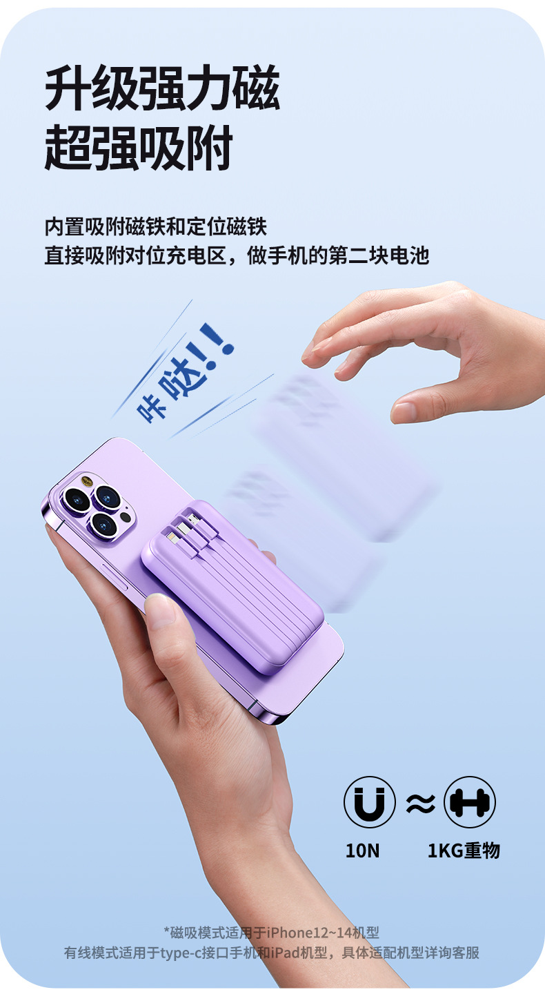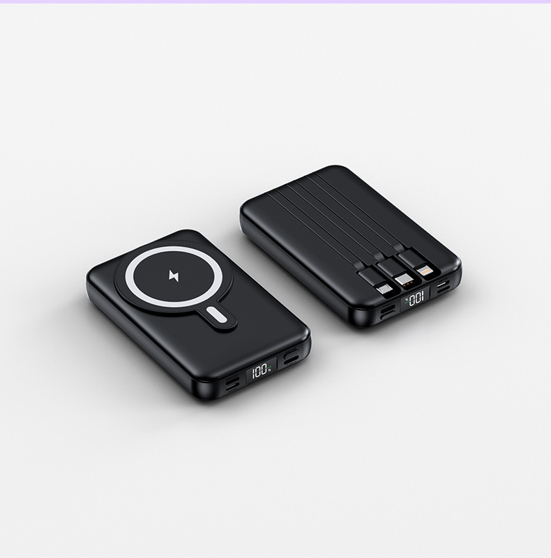 Foreign Trade Wholesale Magnetic Suction Wireless Charger with Cable Mobile Power 10000 MA Small Portable Power Bank.