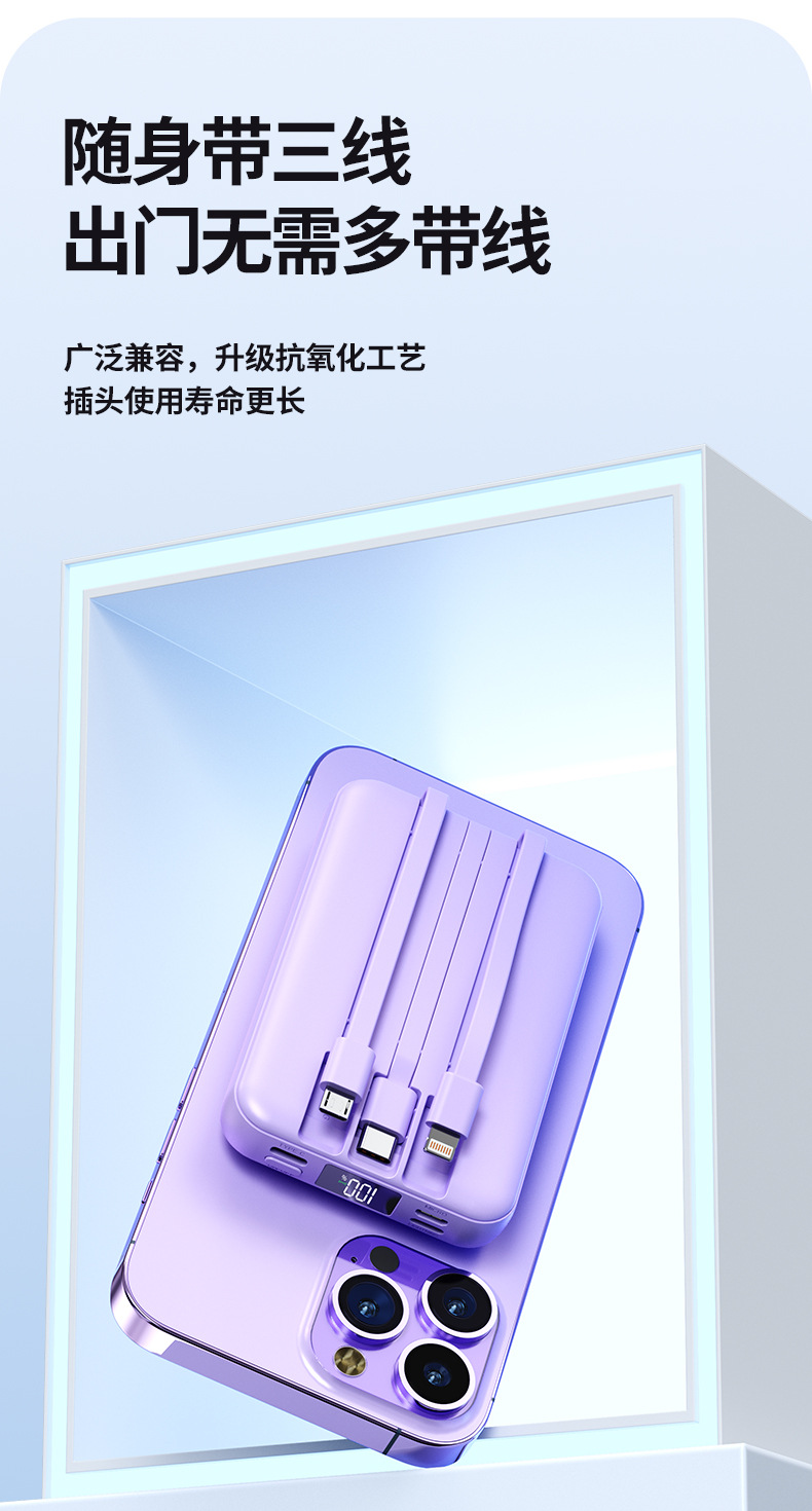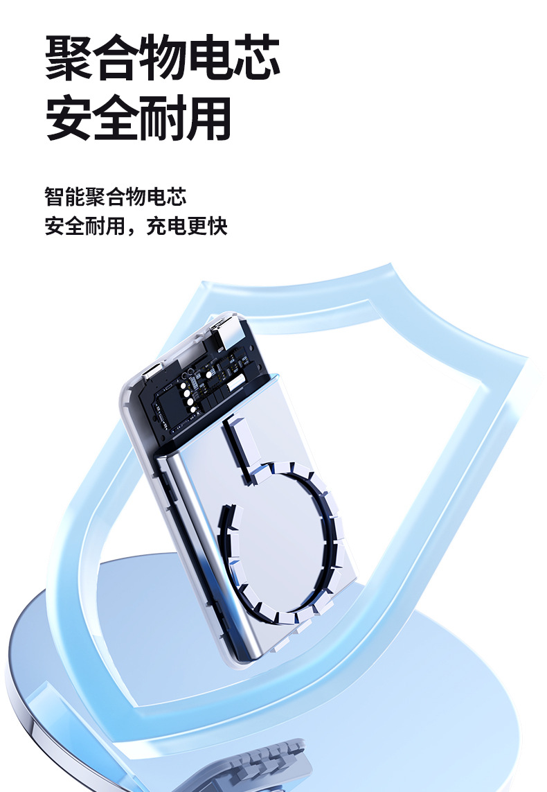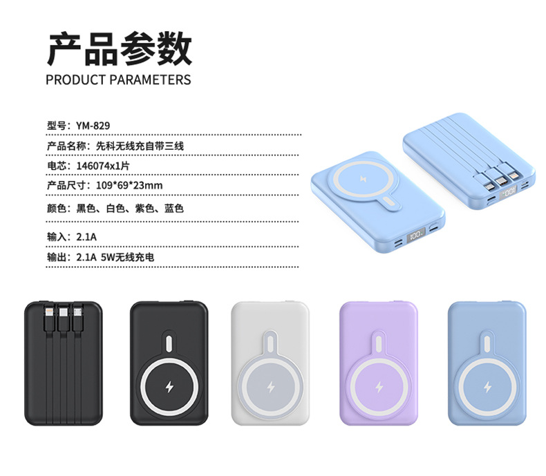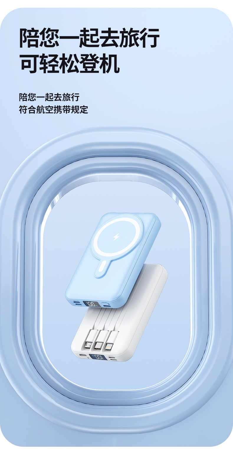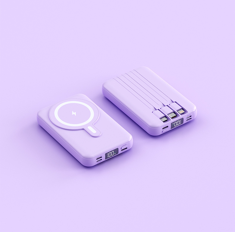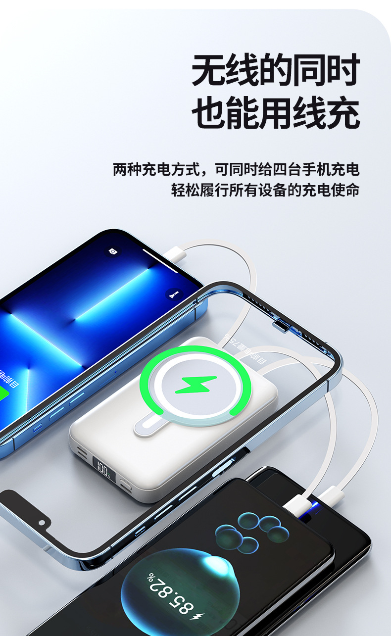 Foreign Trade Wholesale Magnetic Suction Wireless Charger with Cable Mobile Power 10000 MA Small Portable Power Bank.