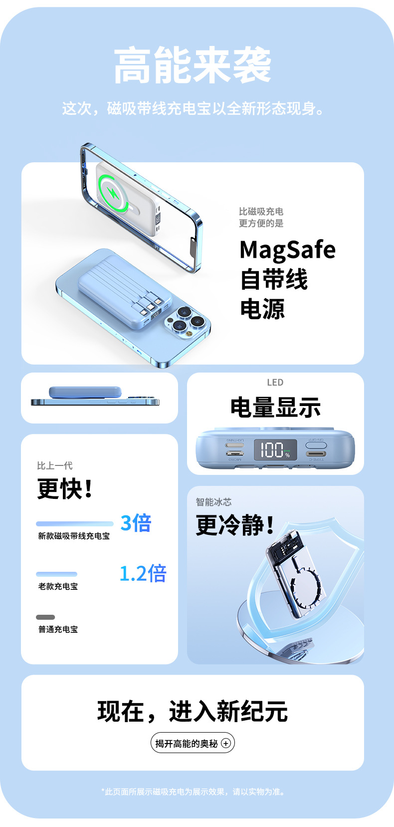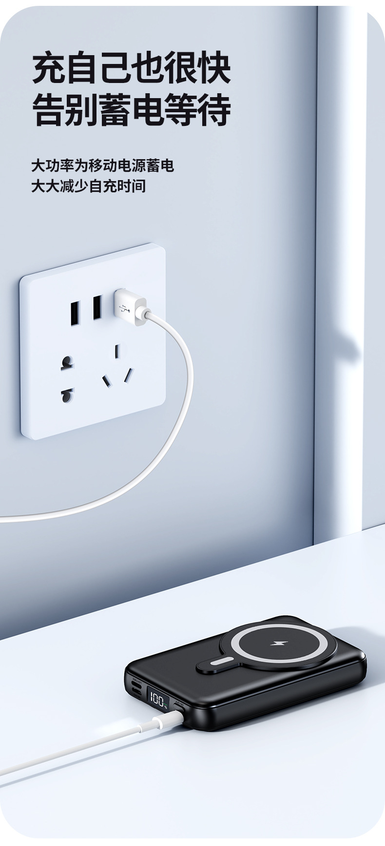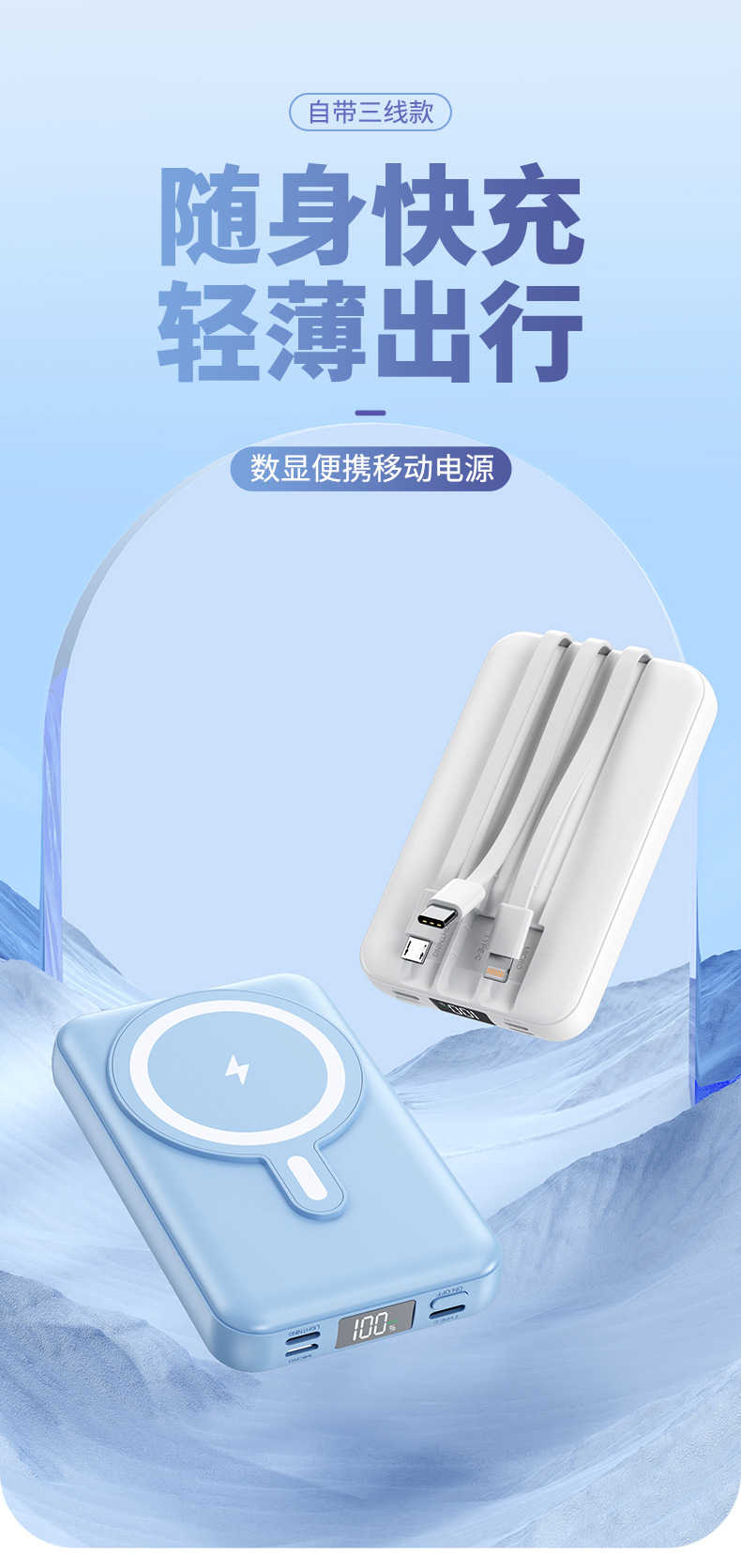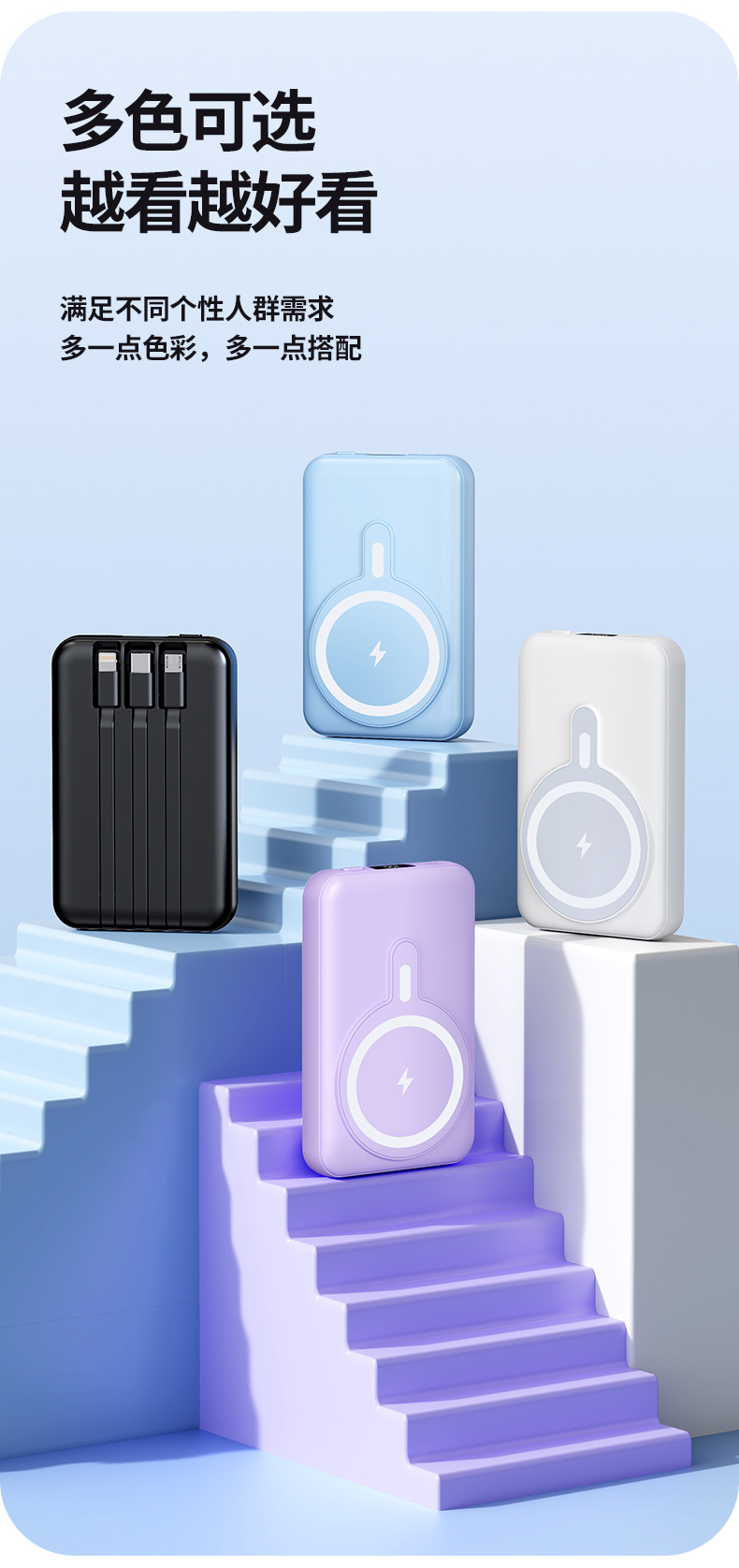 Foreign Trade Wholesale Magnetic Suction Wireless Charger with Cable Mobile Power 10000 MA Small Portable Power Bank.
