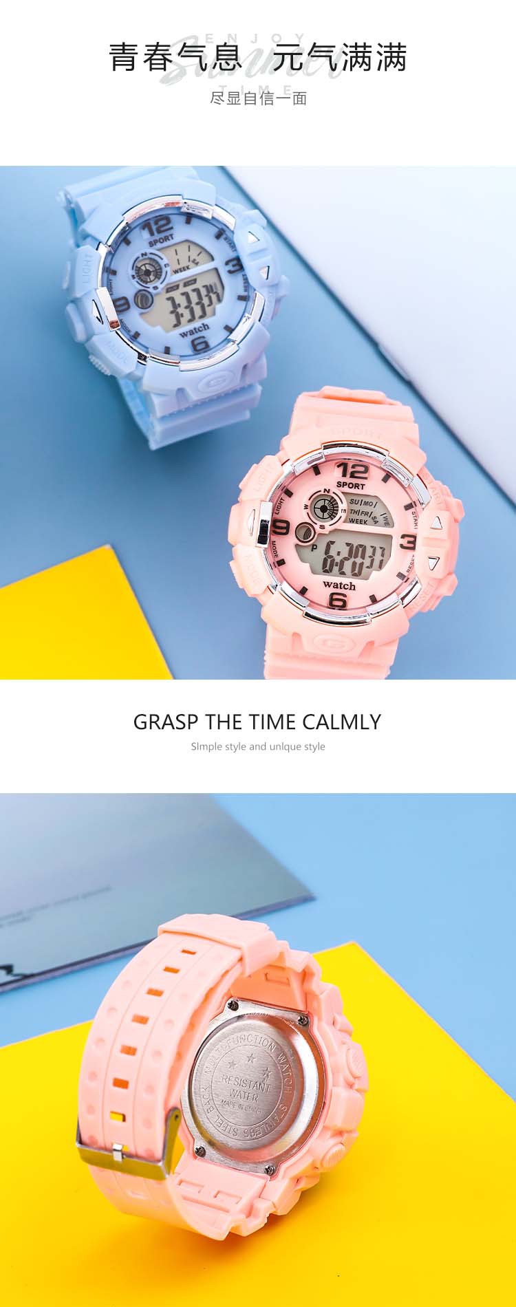 Macaron Campus Student Electronic Watch Youth Primary and Secondary School Students Sports Countdown Running Watch Multi-Functional