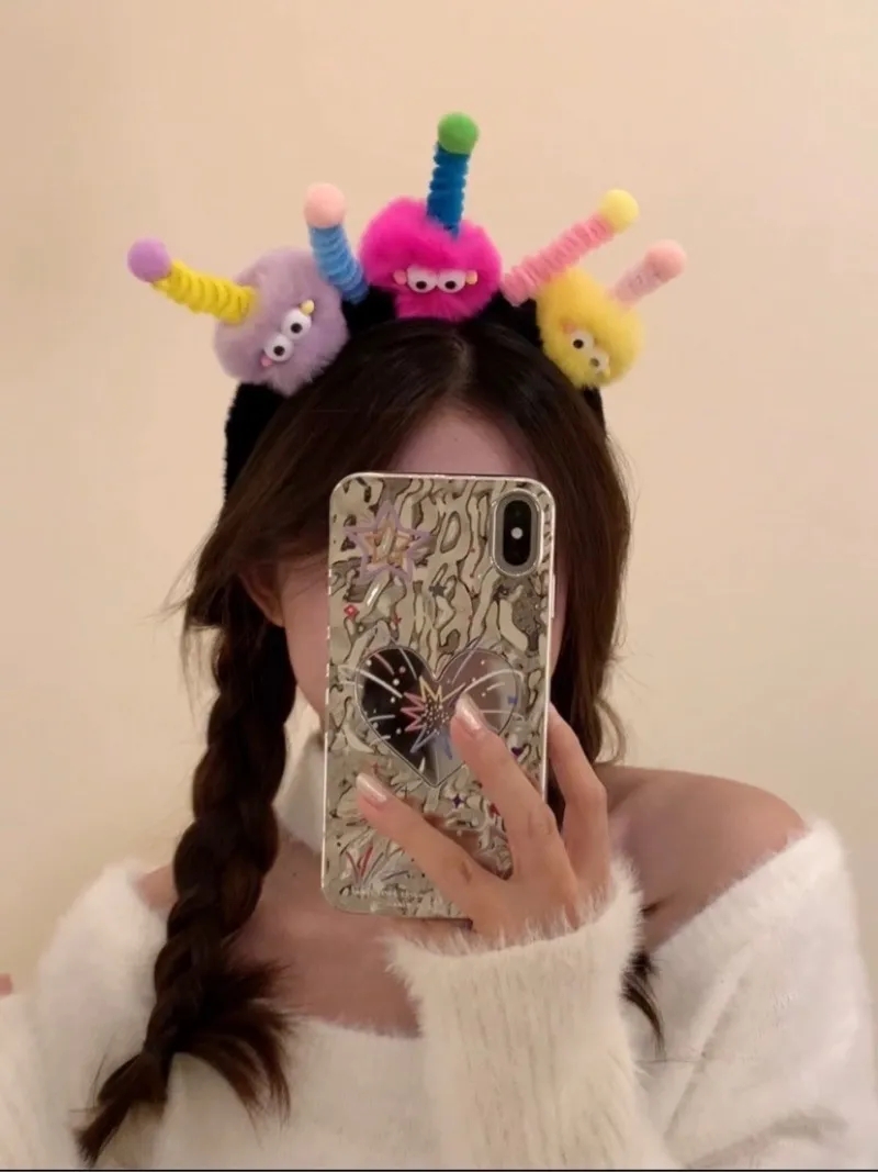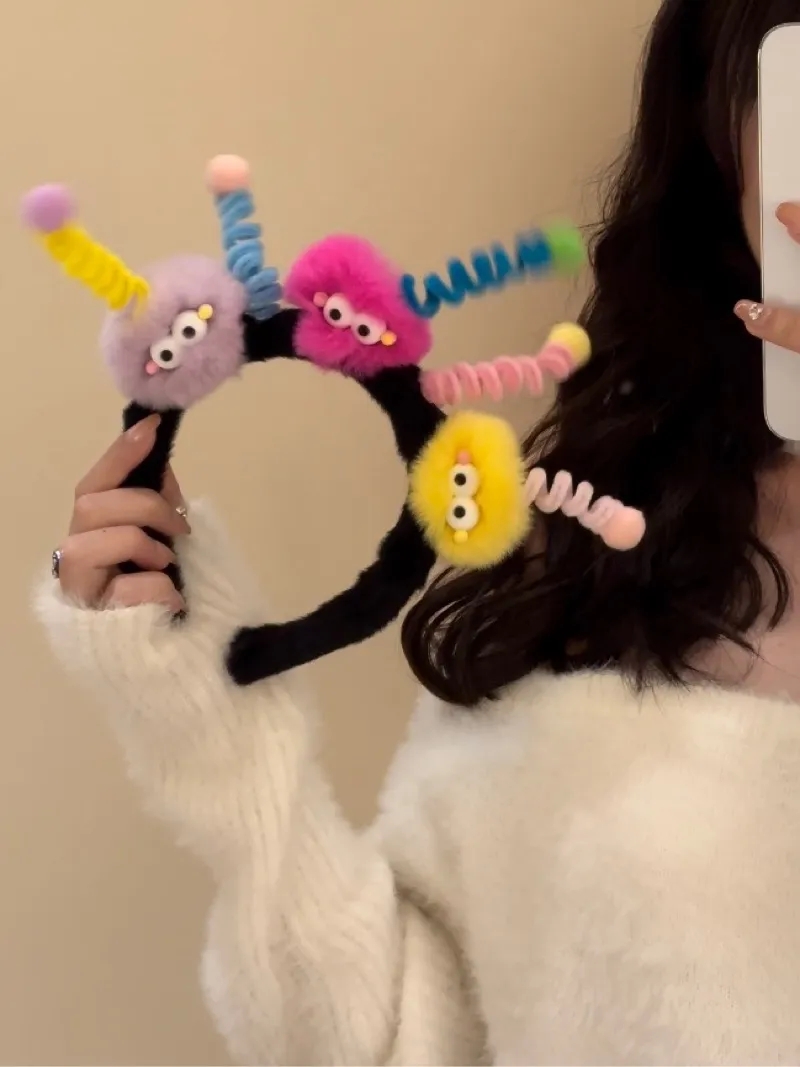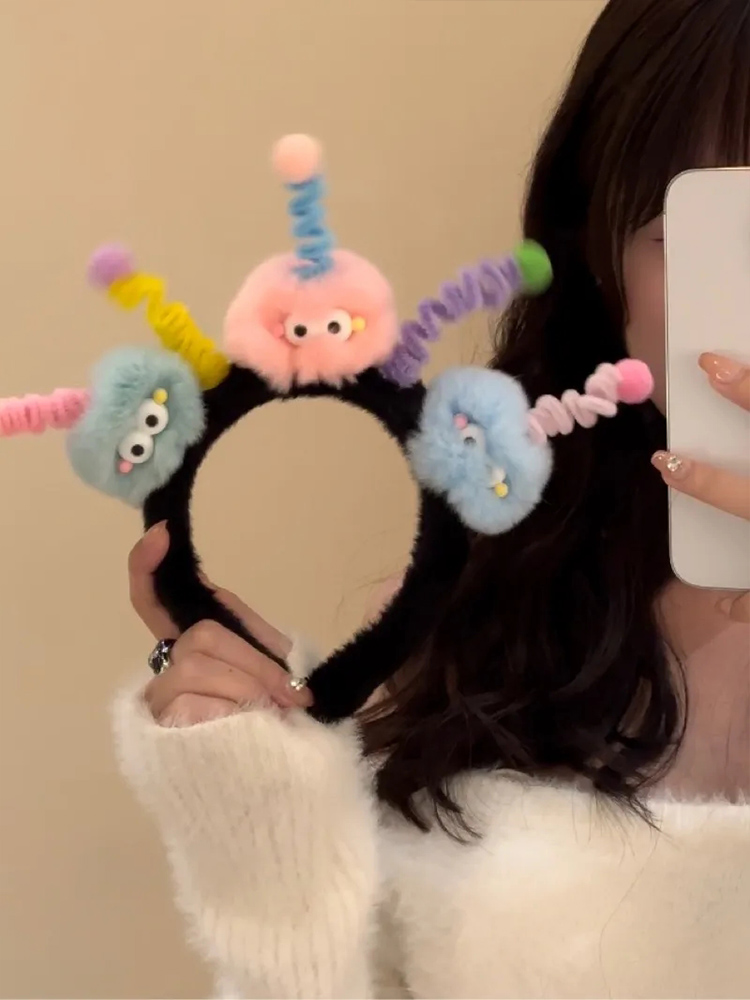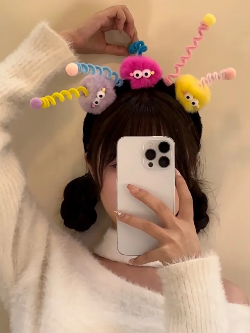 cute funny hair ball twist stick headband small briquette antenna headband female ugly cute headdress hairpin girl hair accessories 中文版
