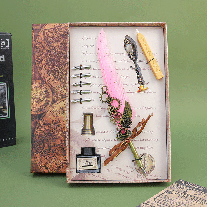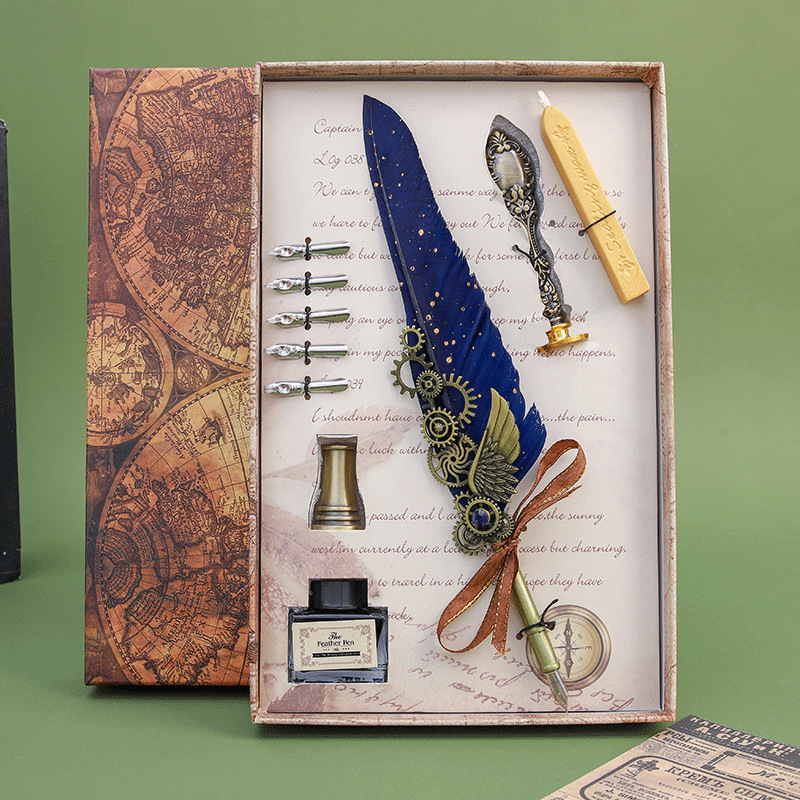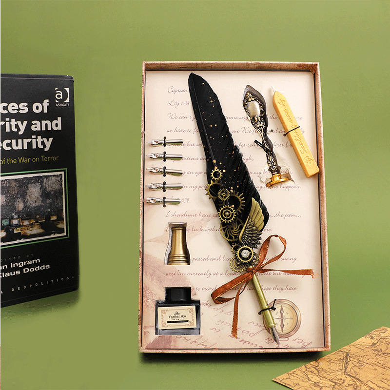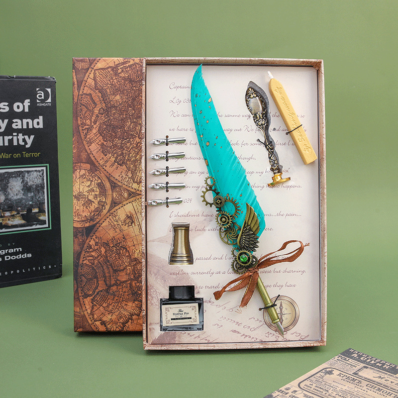 European Retro Feather Pen Suit Harry Potter Dipped in Water Pen Gift Box Practical Birthday Gift for Boys and Girls 中文版