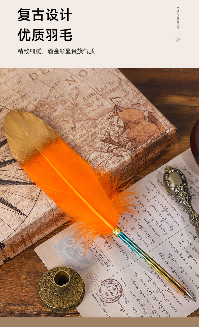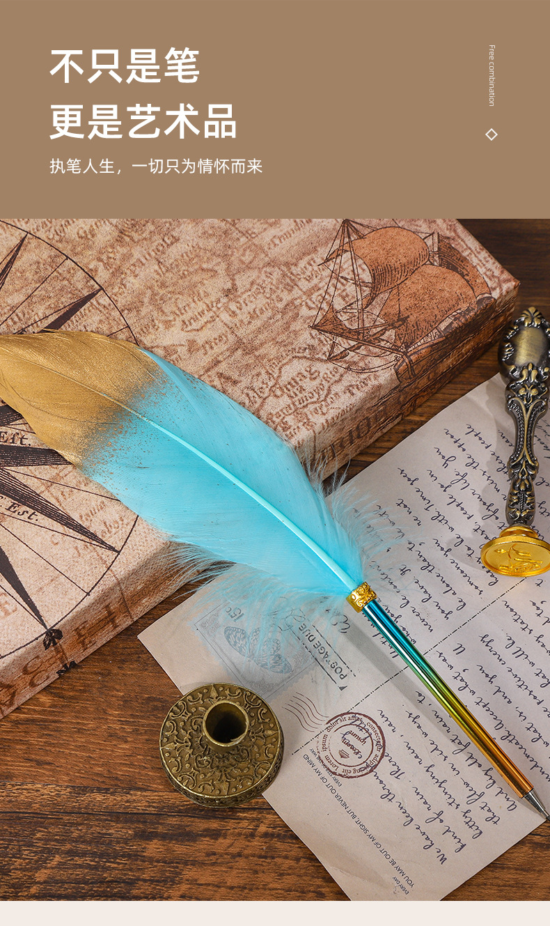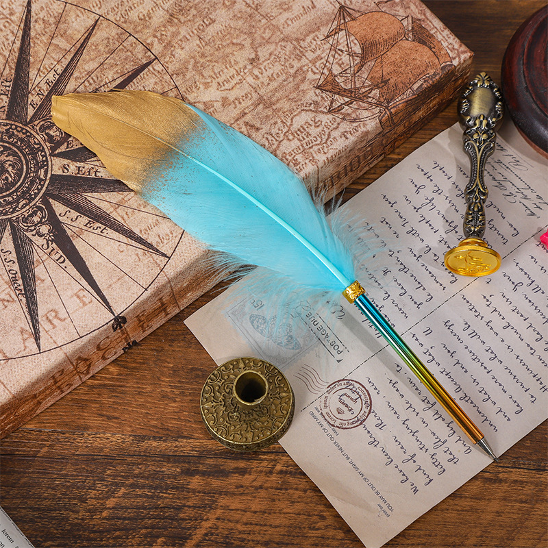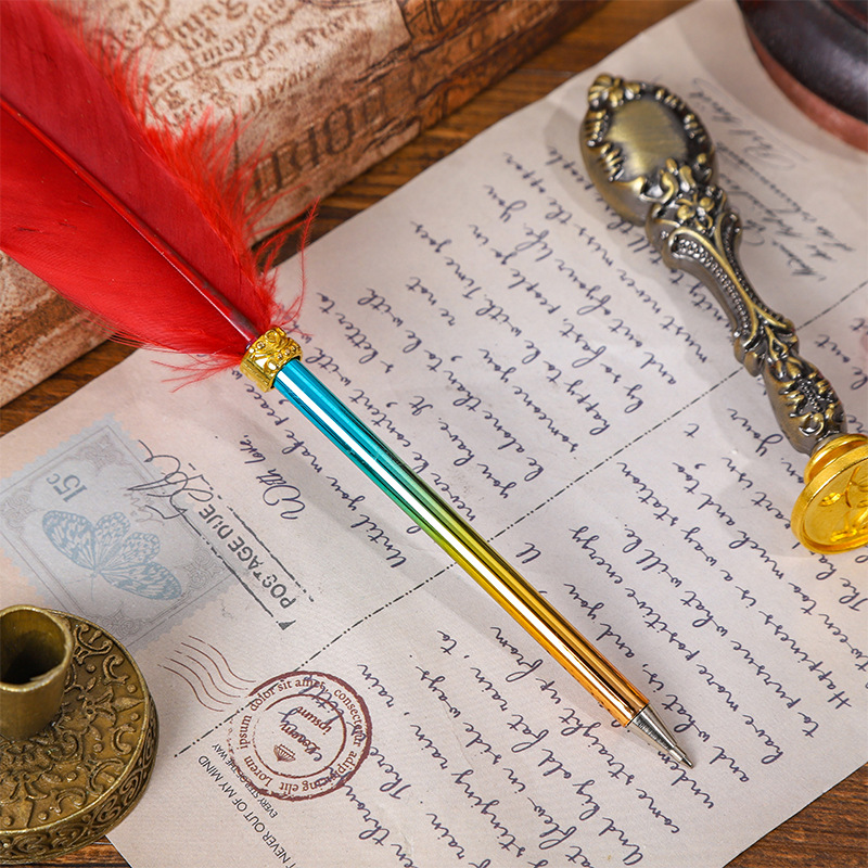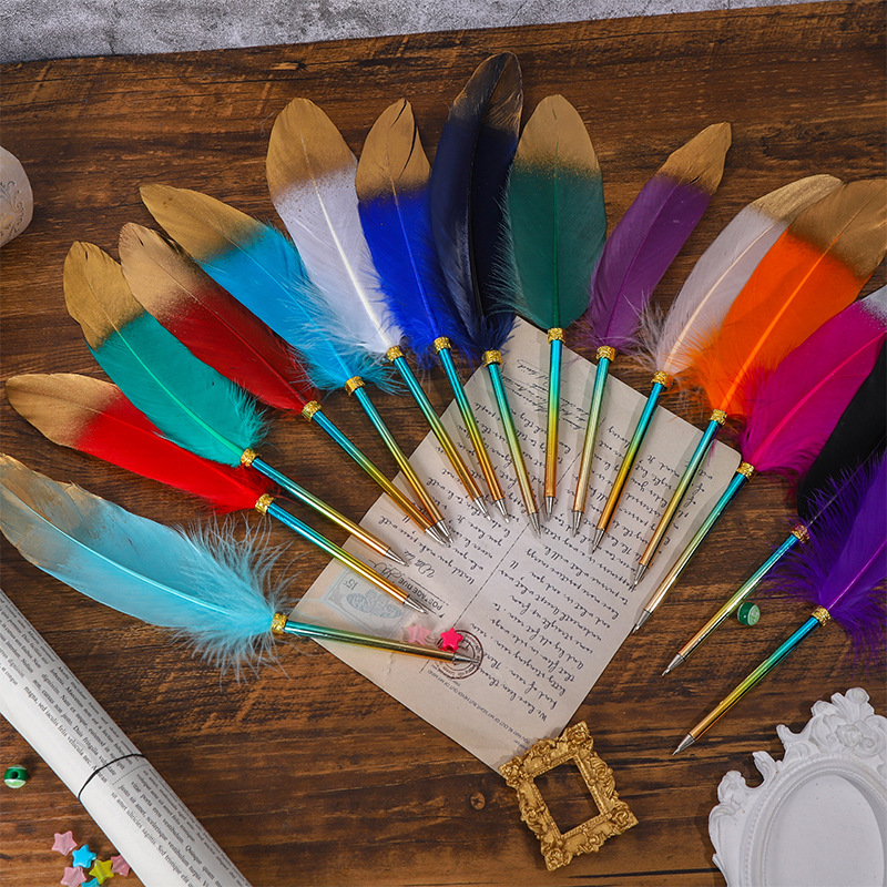European-Style Retro British Gradient Color Feather Pen Pen Student Teacher Wedding Festival Creative Pen Christmas Stationery Simple Outfit 中文版