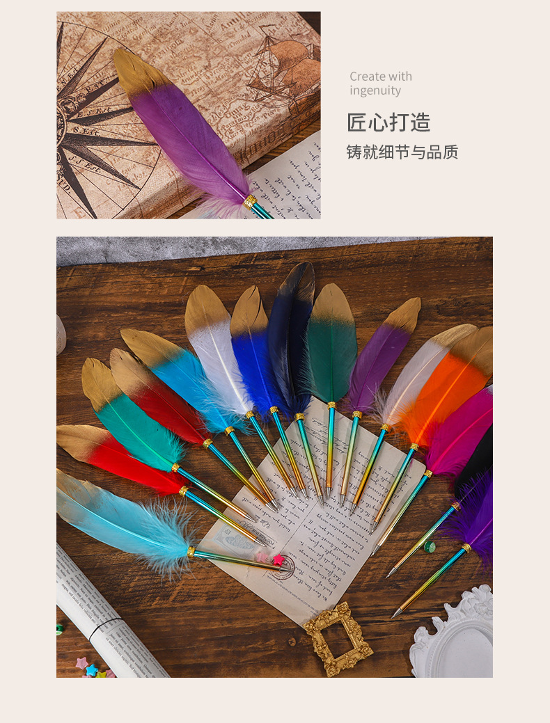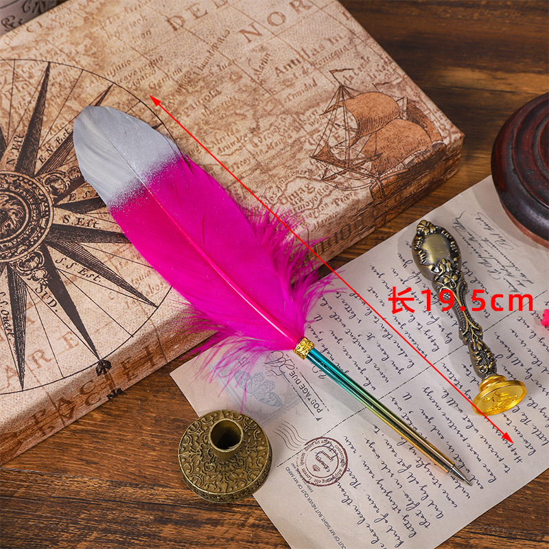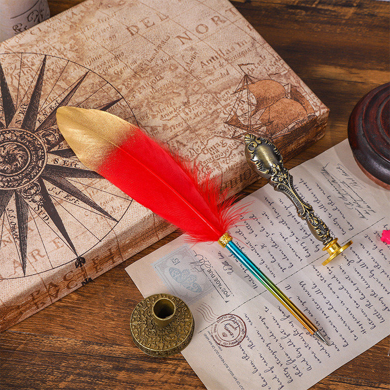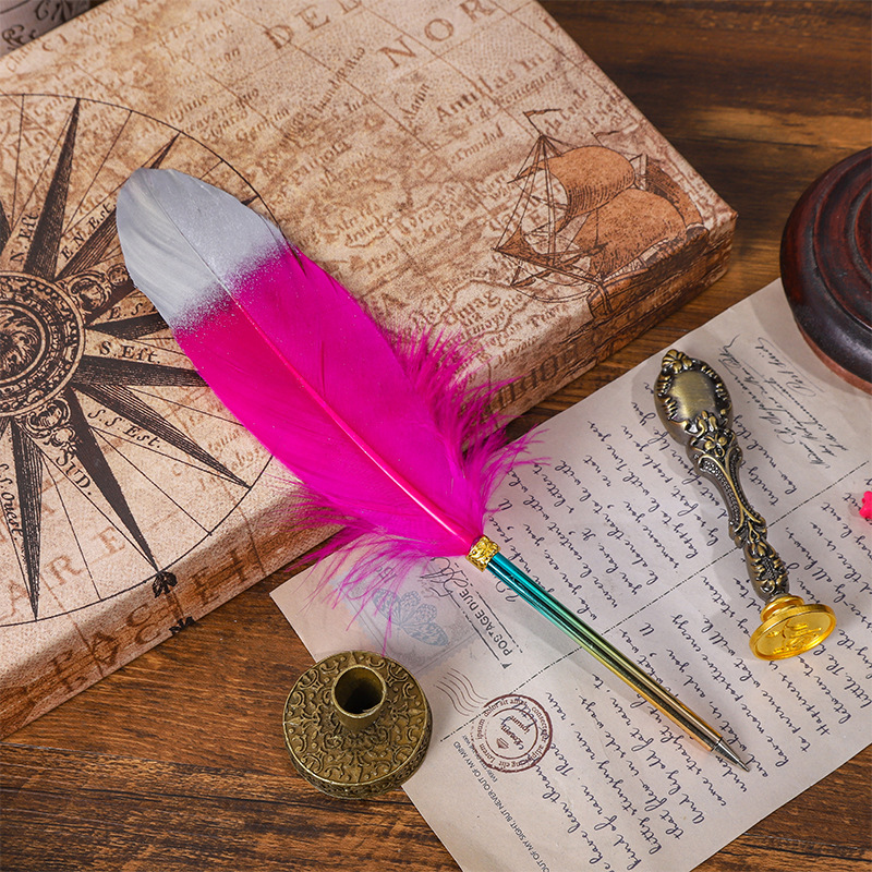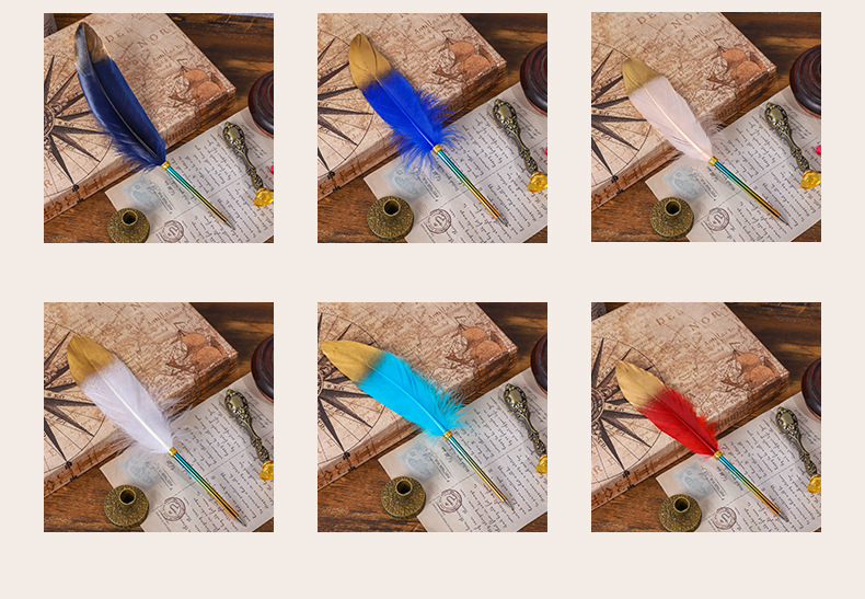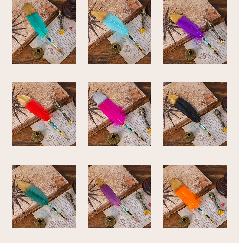 European-Style Retro British Gradient Color Feather Pen Pen Student Teacher Wedding Festival Creative Pen Christmas Stationery Simple Outfit 中文版