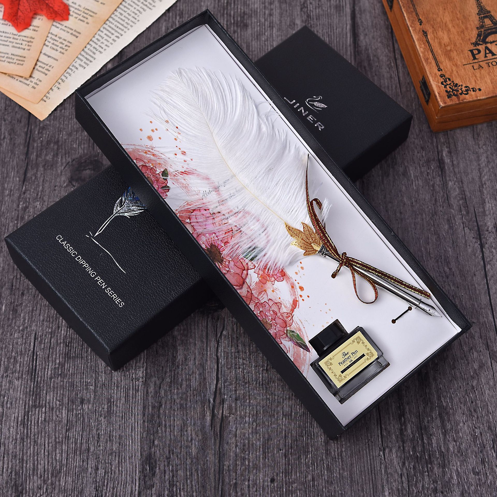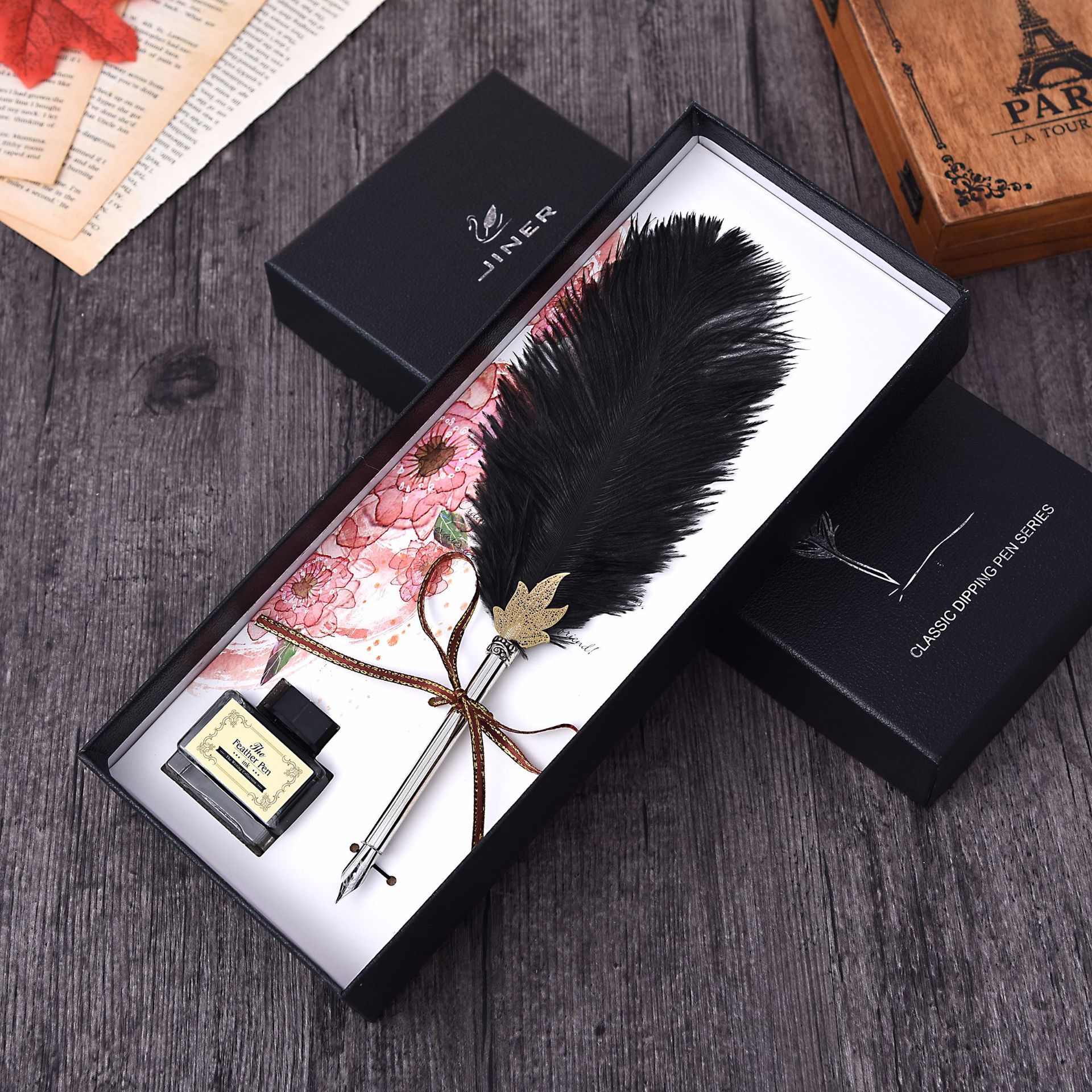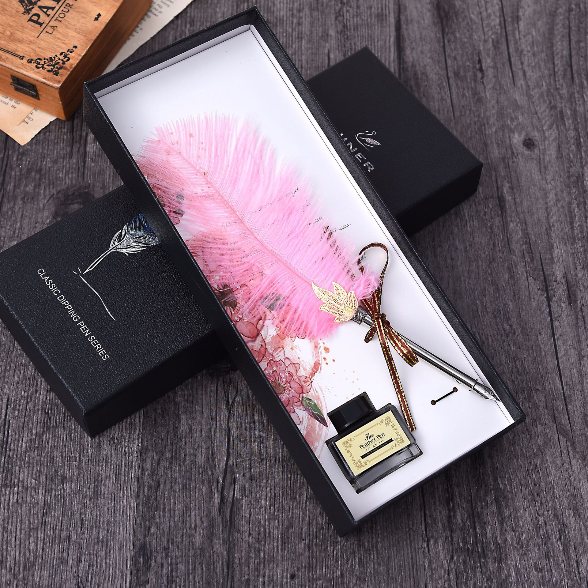 British Natural Ostrich Hair Pen Gift Box Writing Signature Water Pen Advertising Business Planning Christmas Gift