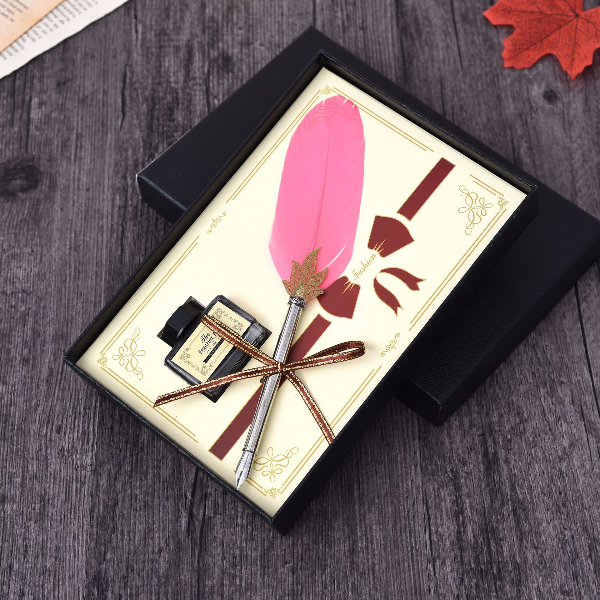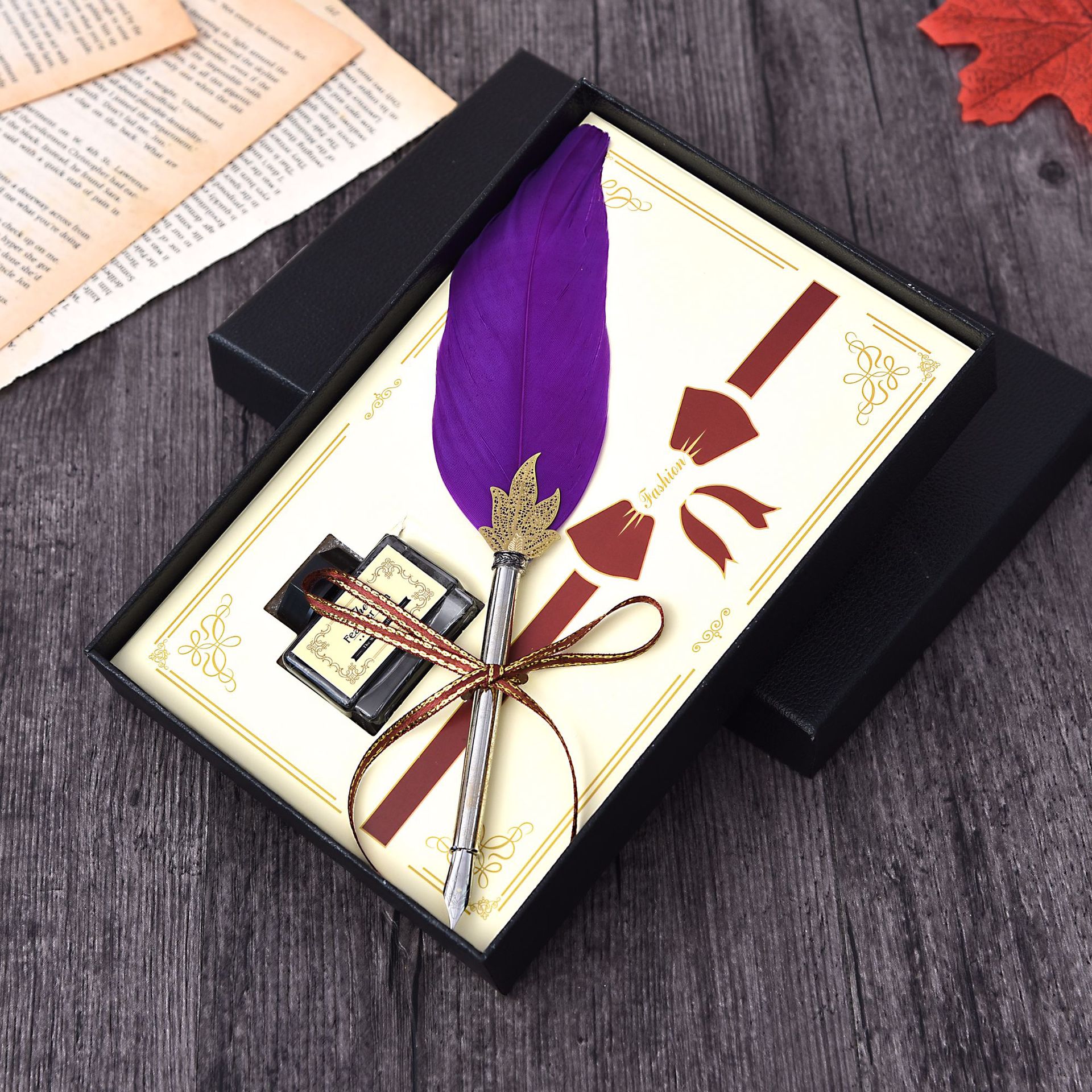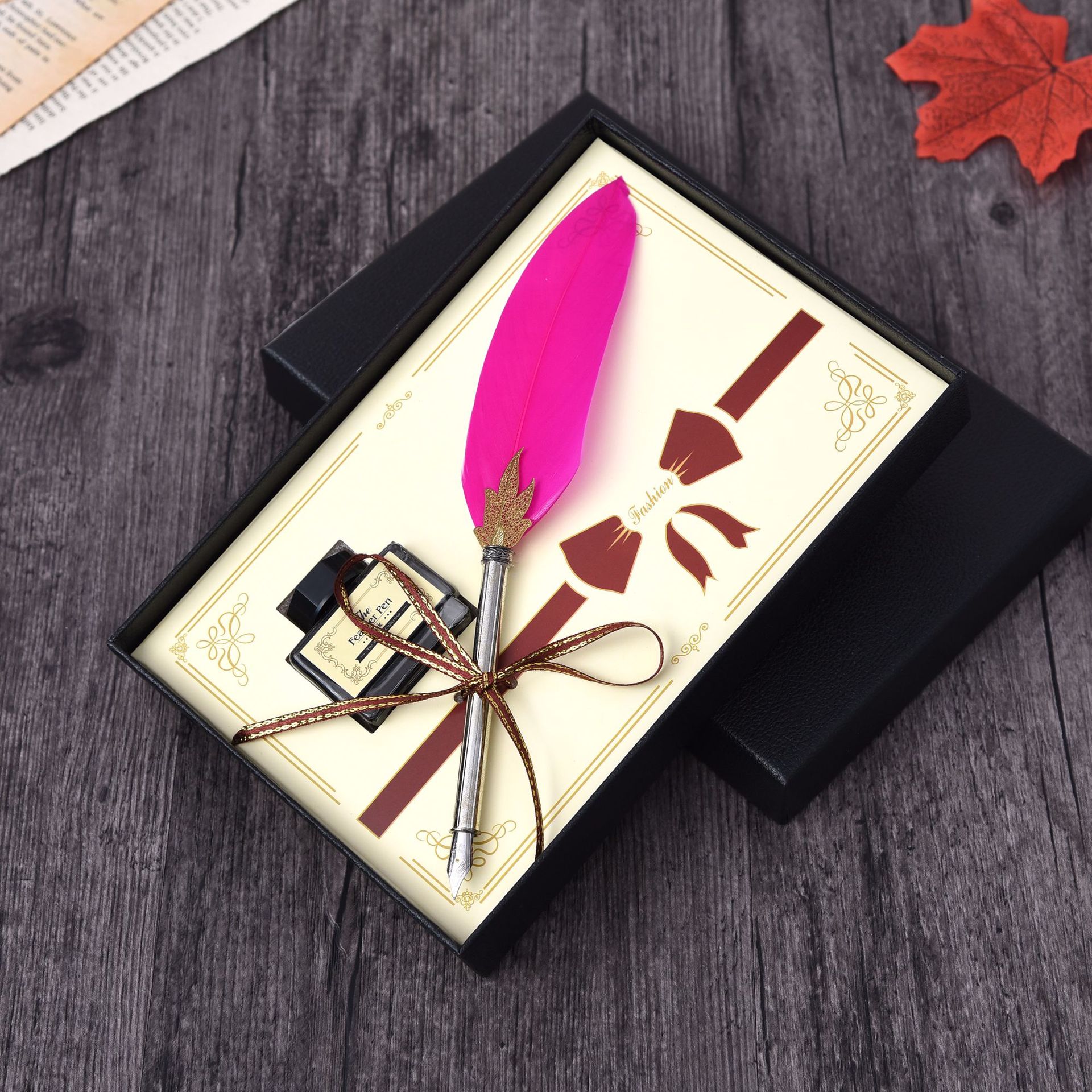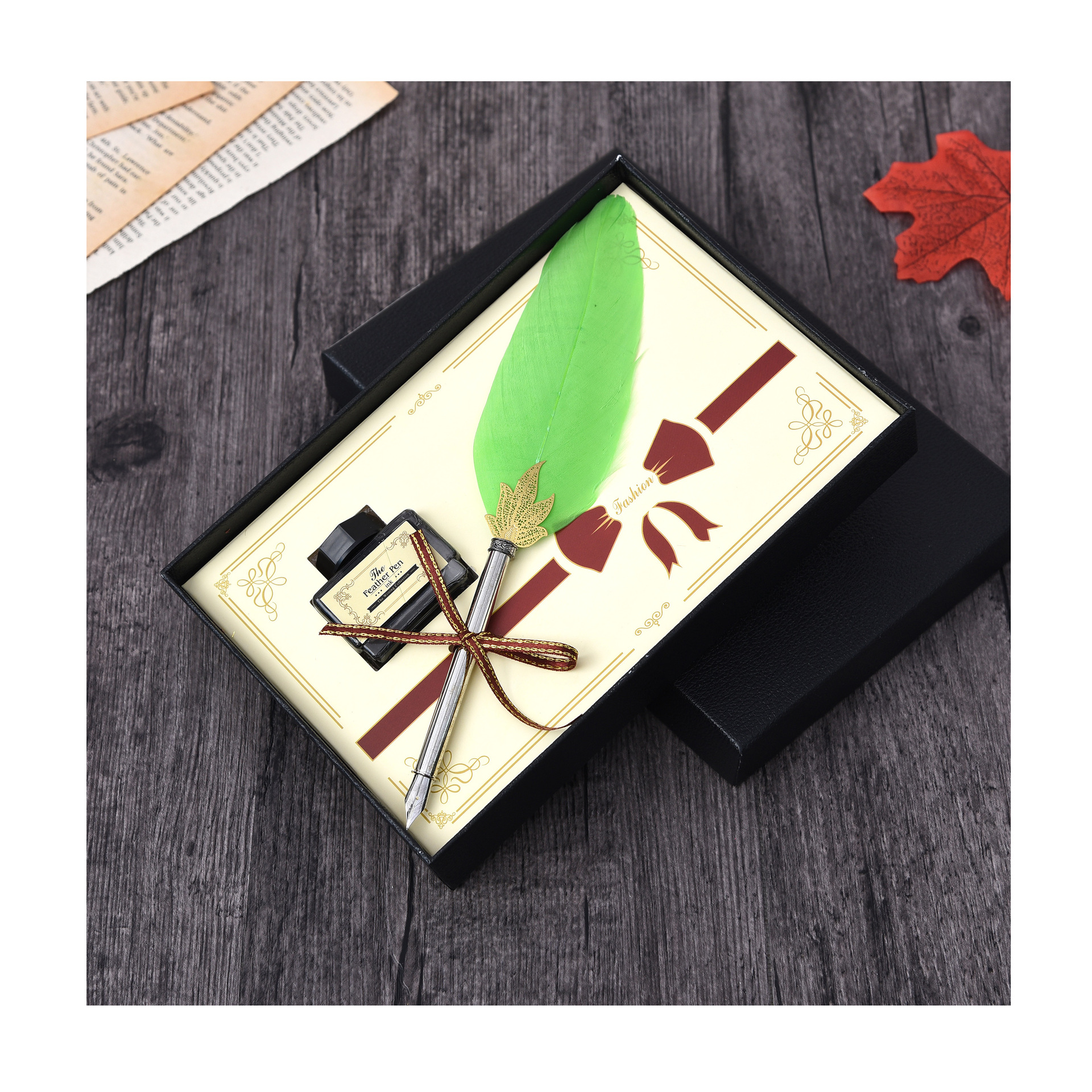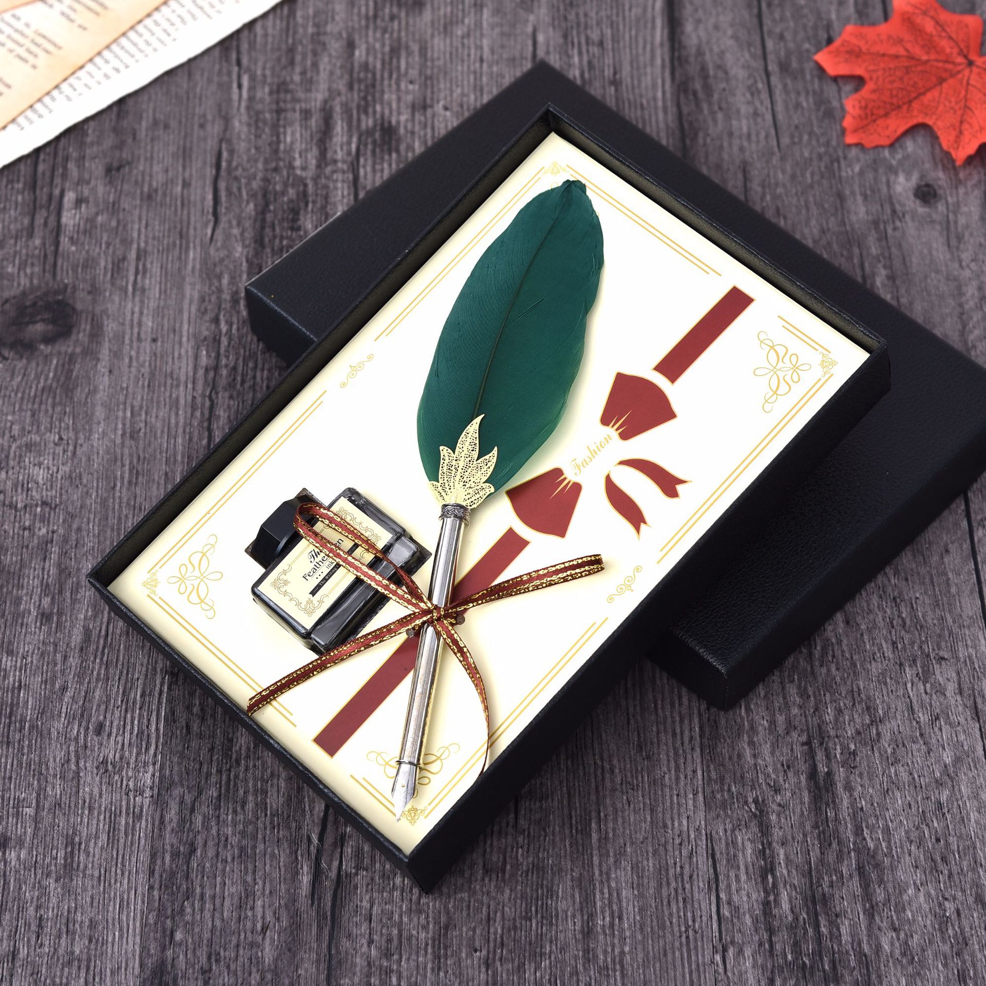 Metal Writing Brush Holiday Gift Solid Color Feather Pen Non-Carbon Ink Feather Pen European Christmas Gift Pen