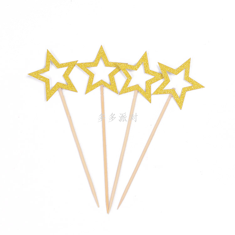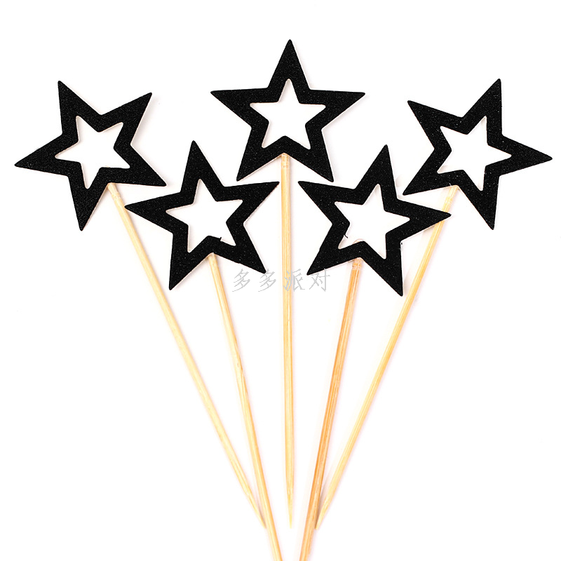 five-pointed star cake inserting card glitter hollow stars cake decorative insertion three-dimensional five-pointed star cake card decorative flag 中文版