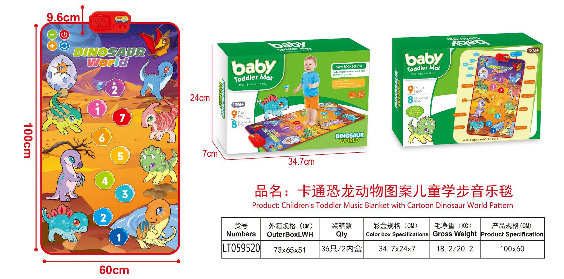 100 * 60cm cartoon dinosaur animal pattern toddler music blanket 757-48