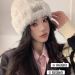 wool hat autumn and winter women's wild knitted closed toe face small warm white plush velvet beanie hat big head circumference