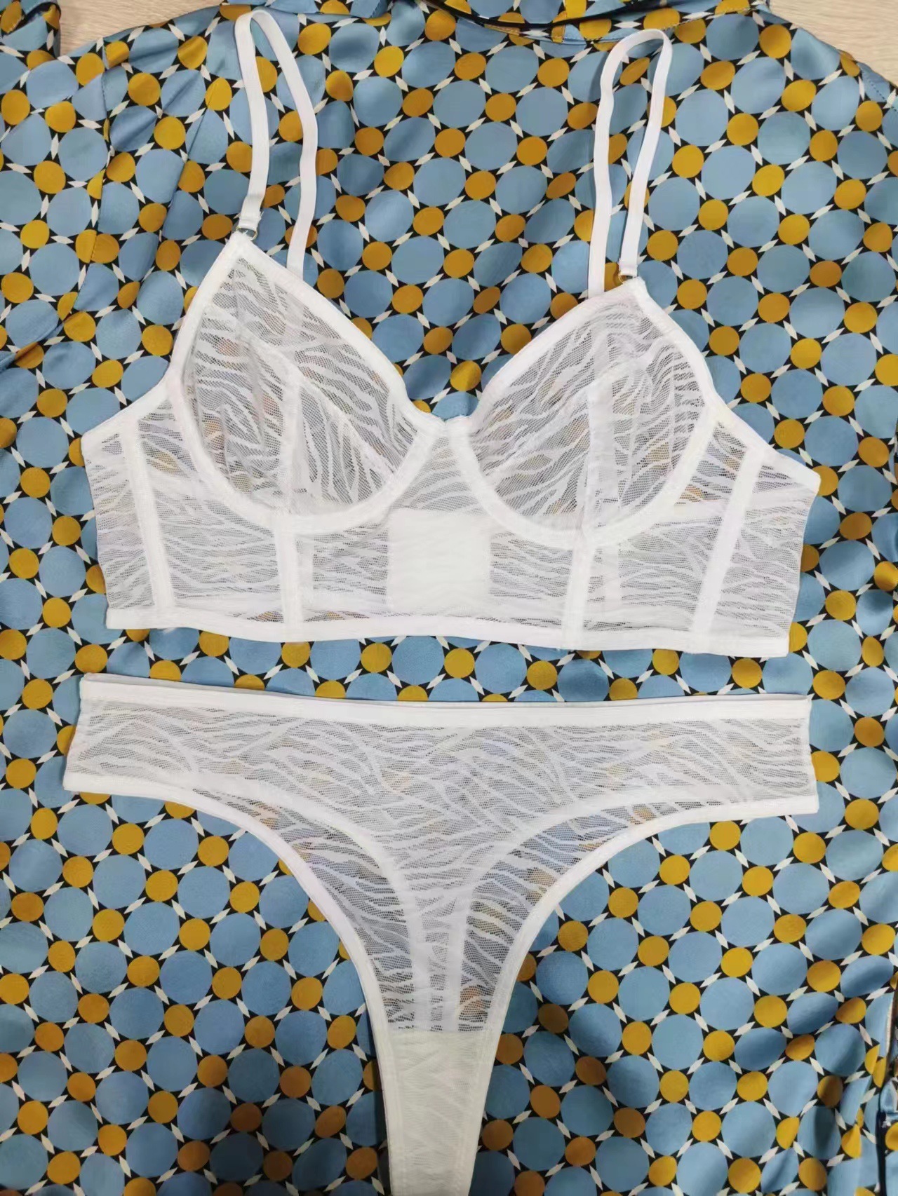 big chest lace underwear ultra-thin translucent steel ring anti-sagging big chest breast contracting bra cross-border sexy bra set 中文版