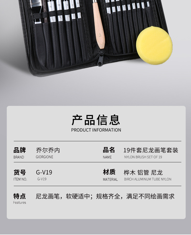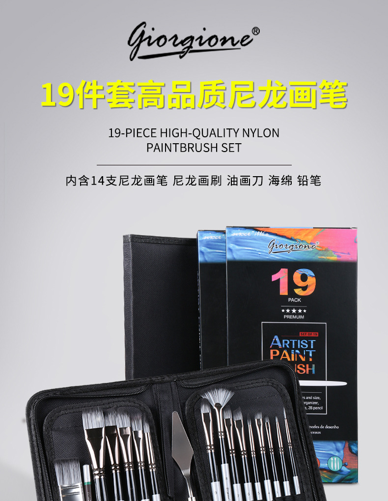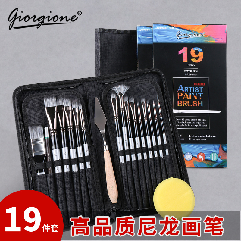 19 PCs Suit Nylon Hair Watercolor Painting Pen Wholesale Jorchone Oil Painting Knife Cloth Bag Acrylic Painting Brush Gift