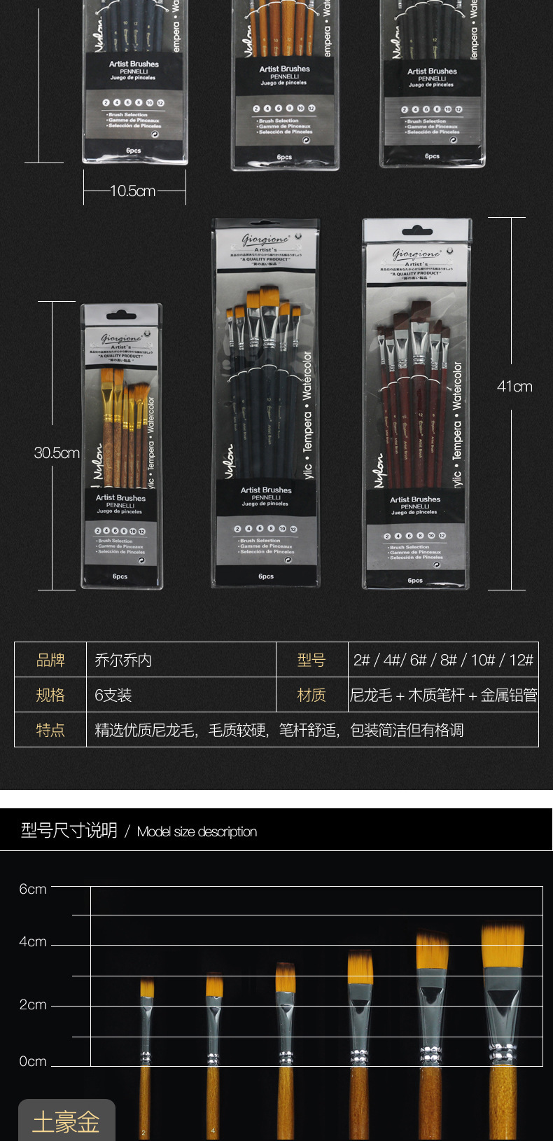 Nylon Hair Brush 6 Suit Watercolor Painting Pen Factory Wholesale Children's Art Drawing Pen Suit