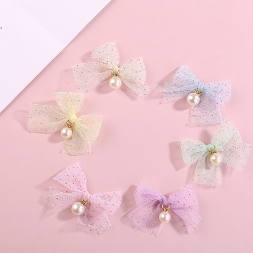 in stock cute mesh pearl bow diy children's hair accessories clothing shoes and hat decoration accessories factory wholesale 中文版