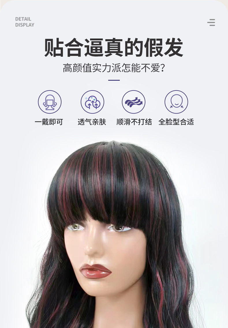 cross-border hot selling european and american style wig women's long curly hair rose inner net women's black pick brown factory direct sales 中文版