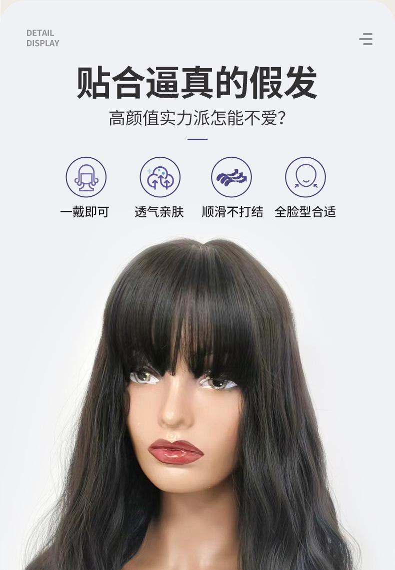 cross-border wig european and american style wig female long curly hair big wave straight bangs black mechanism synthetic wigs wig