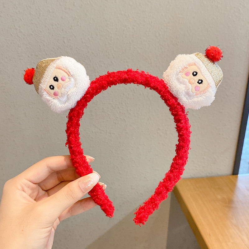 cute cartoon plush christmas headband girl's heart mori hair ball antlers santa claus headband christmas hair accessories
