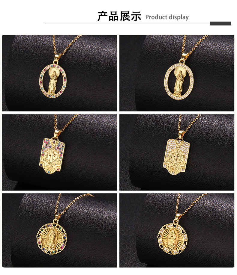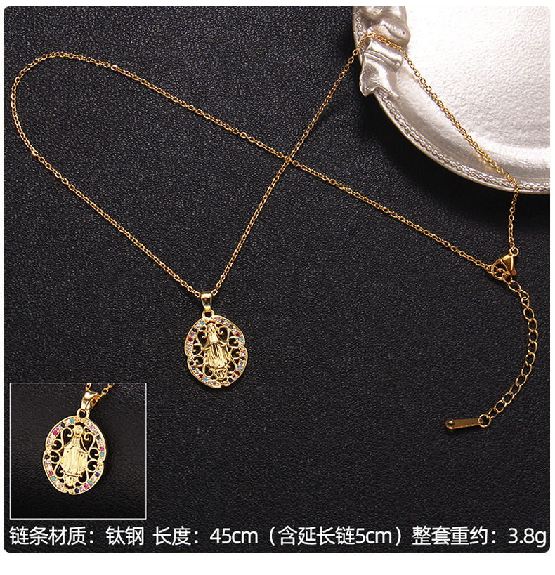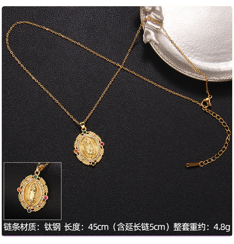 europe and america cross border hot sale copper-plated real gold necklace women's light luxury personality retro fashion virgin mary pendant ornaments