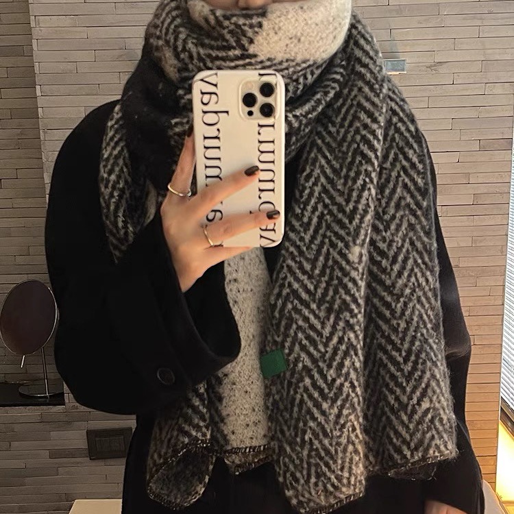 french style high-grade autumn and winter warm scarf women's large elegant shawl versatile cashmere-like scarf cold-proof thickened 中文版