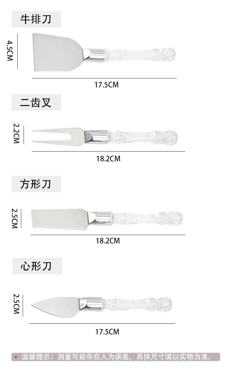 hz720# cheese cheese knife and fork three-piece set crystal handle cheese knife and shovel kit stainless steel cheese knife baking