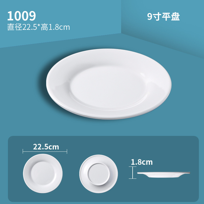 melamine white porcelain-like round flat plate hotel restaurant commercial tableware buffet plate plastic plate wholesale 中文版