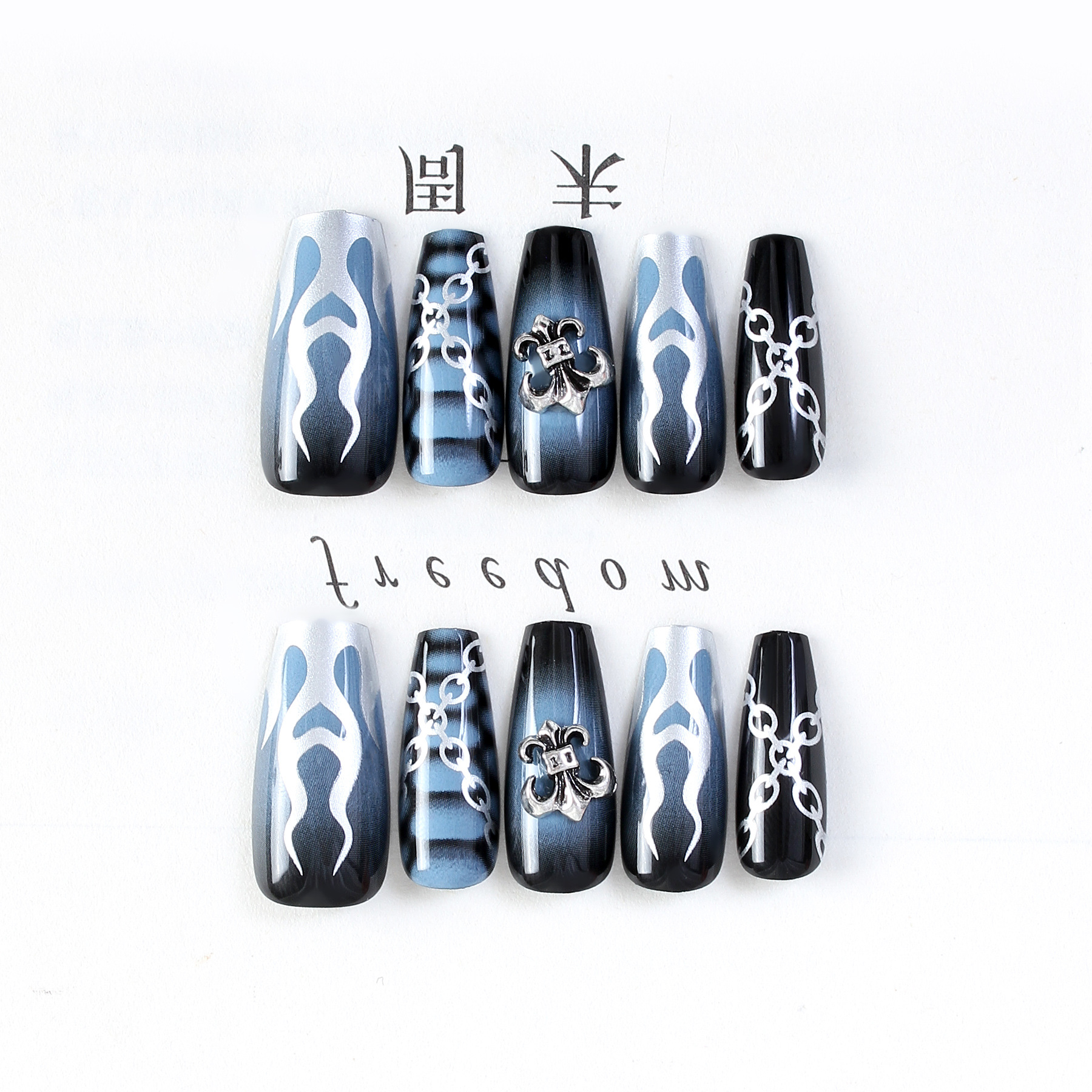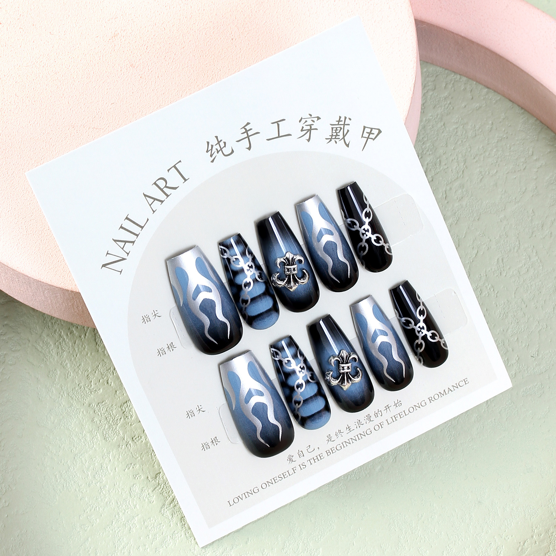 Best Seller in Europe and America Silver Edge Crostar Long Ladder Hand-Worn Nail Finished Ballet Nail Fake Nails with Kit 中文版