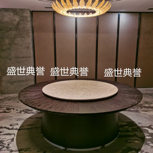 Star Hotel Solid Wood Electric Dining Table and Chair Restaurant Automatic Turntable Dining Table Luxury Box Round Table 中文版