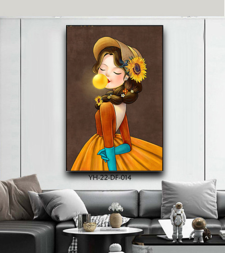 living room decorative painting sunflower entrance wall painting bubble blowing girl art modern light luxury hanging painting at the end of the corridor 中文版