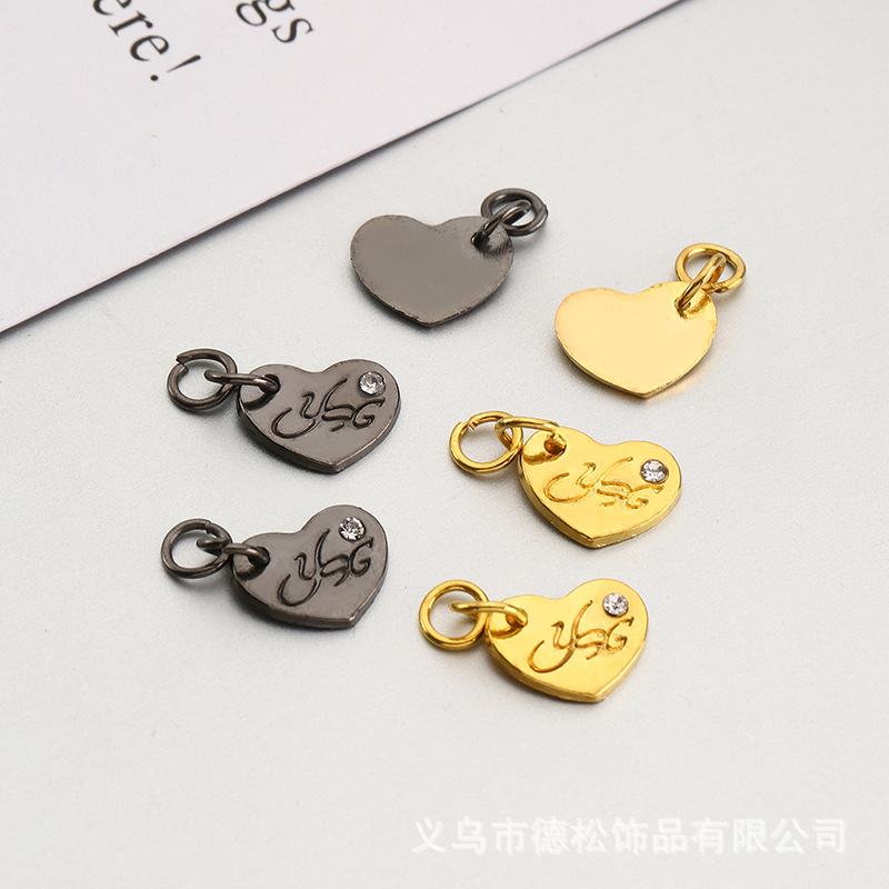 Factory hot sale stock, convex and concave logo clothing labels, golden, unusual shape, perforated small metal tags, painted metal boxes, luggage tags