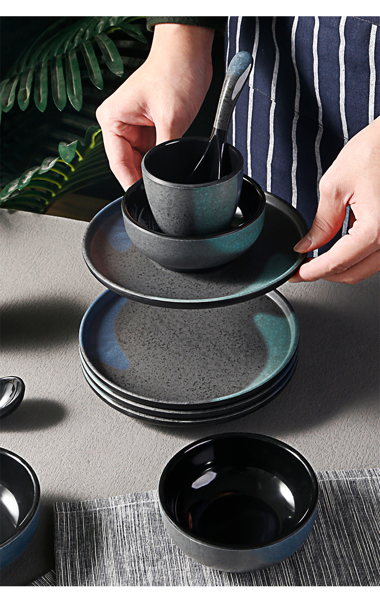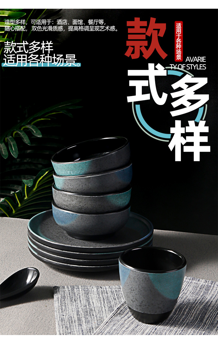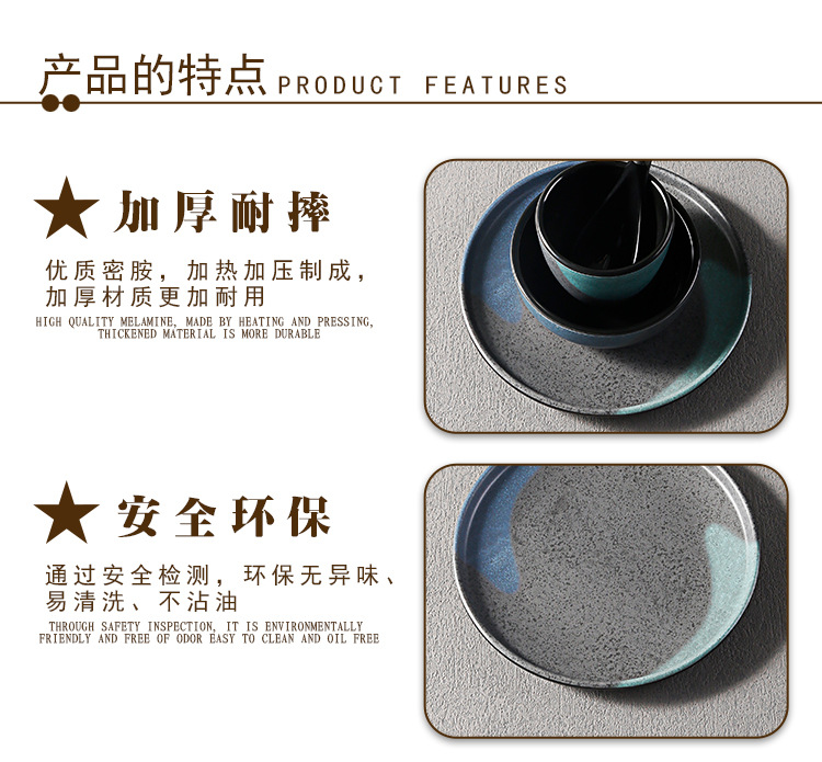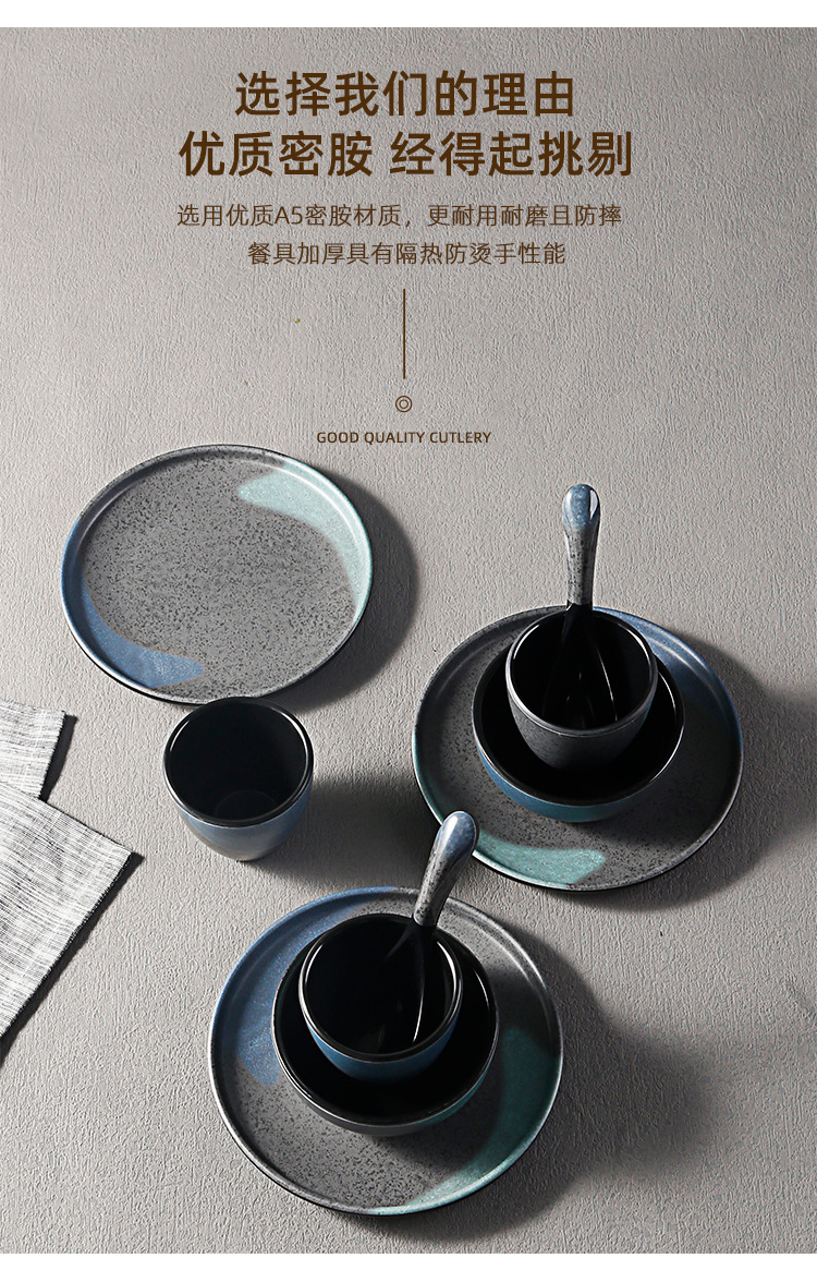 japanese hot pot restaurant dining table tableware four-piece melamine imitation porcelain retro frosted spoon cup, bowl, dish, bowl and plate set 中文版