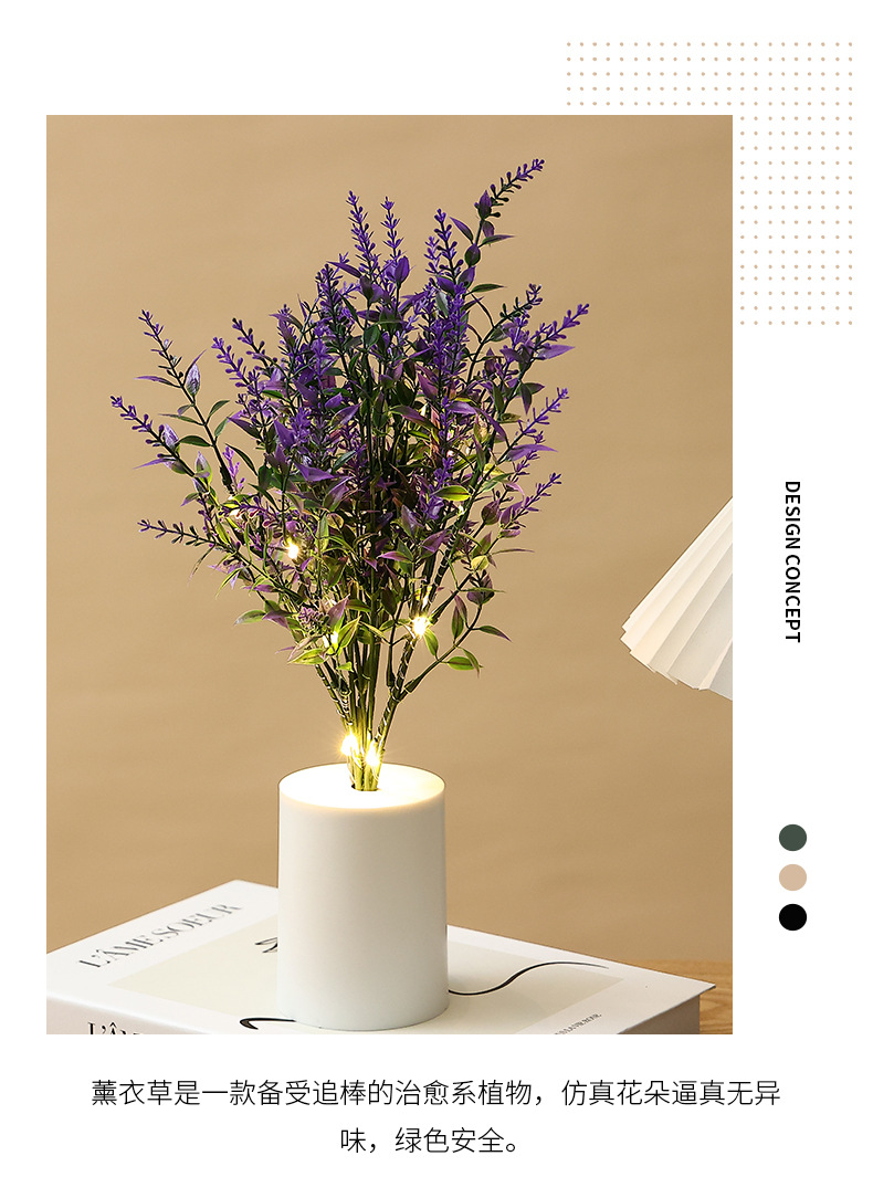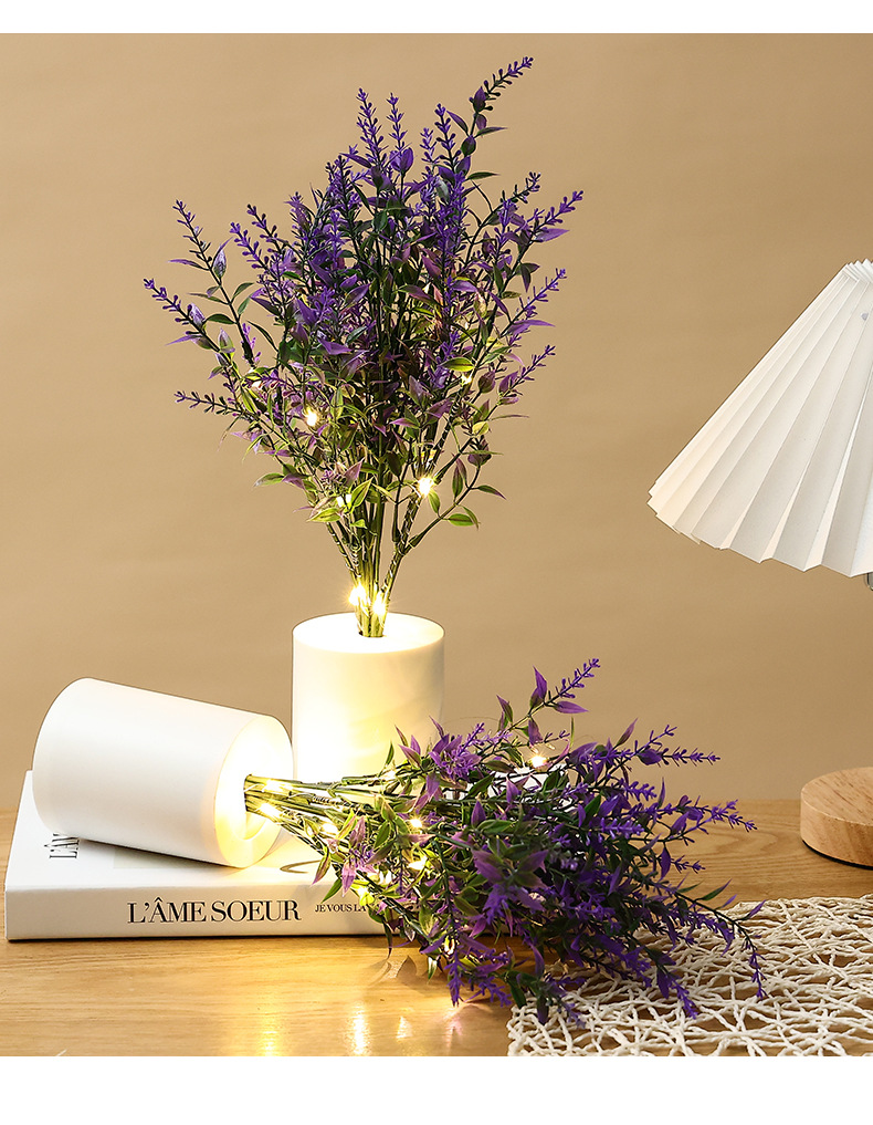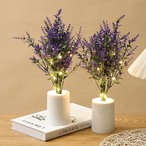 lavender small night lamp bedroom bedside ambience light creative simulation bouquet night light home decoration desktop decoration 中文版