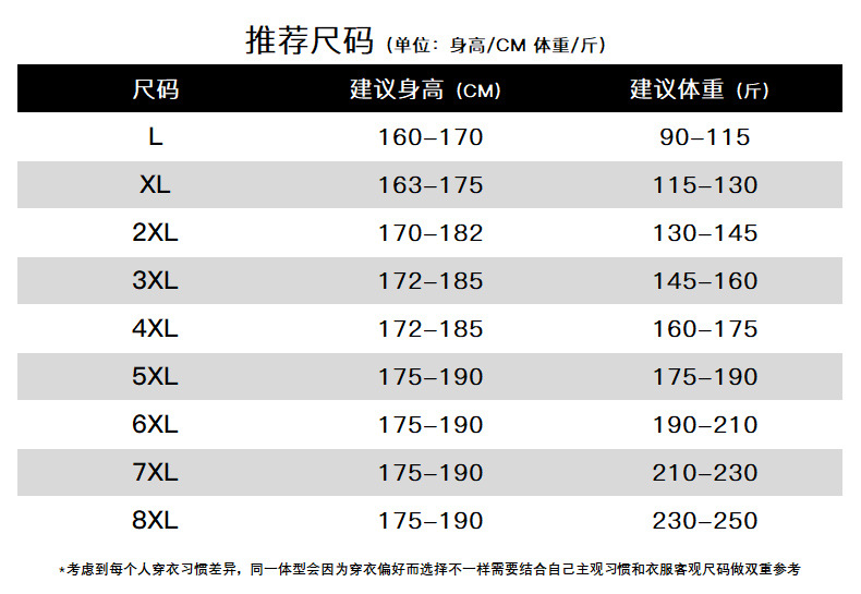 | 7XL | ¥0.0 | 9999 piece available |