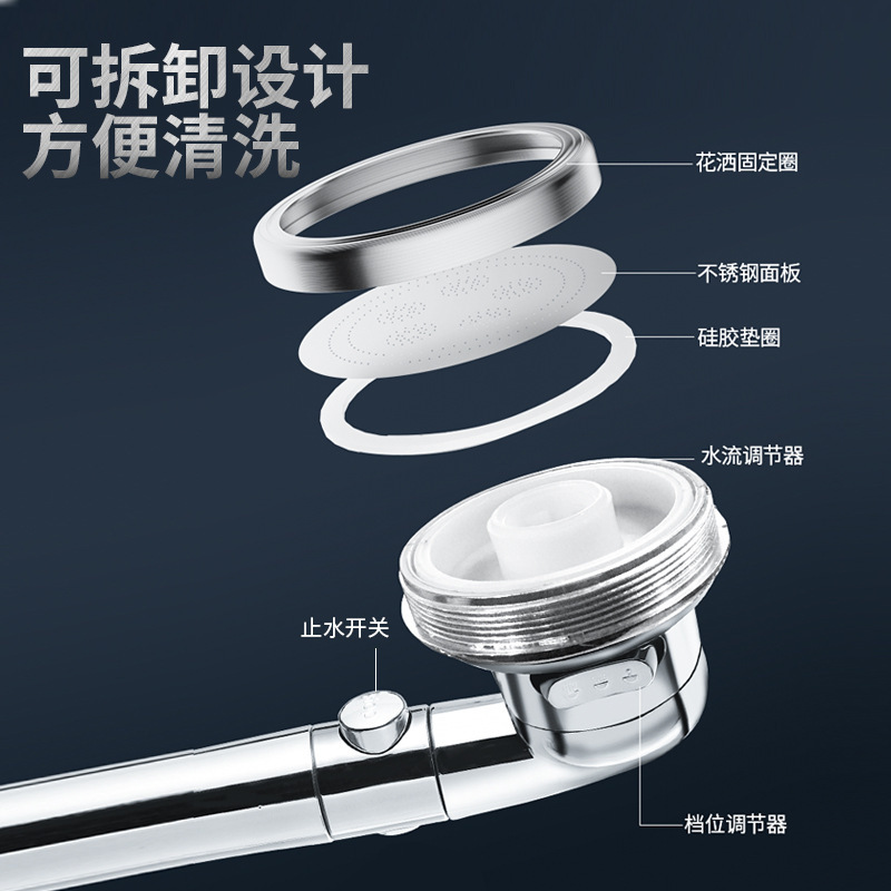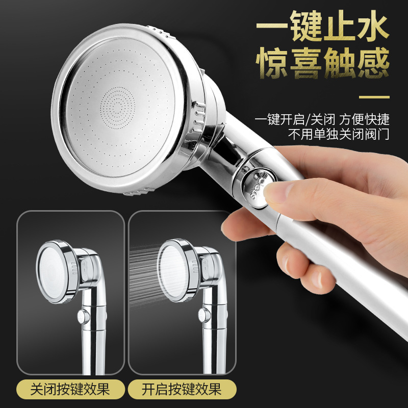Three-Speed Adjustable Anion Water Stop Shower Head One-Click Water Stop Pressurized Water-Saving Shower Hand-Held Shower Nozzle Manufacturer