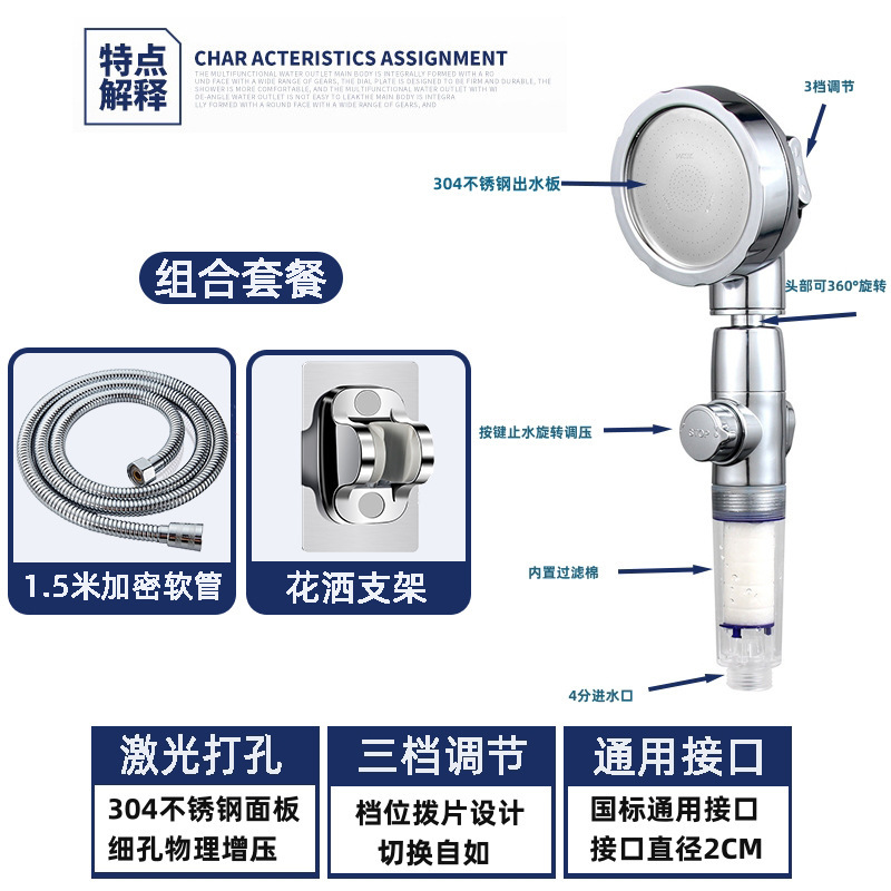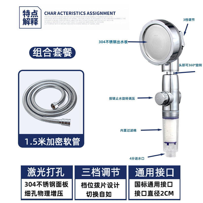 One-Click Water Stop Supercharged Shower Head Nozzle Household Handheld Filter Water Saving Wine Shower Head Shower Head
