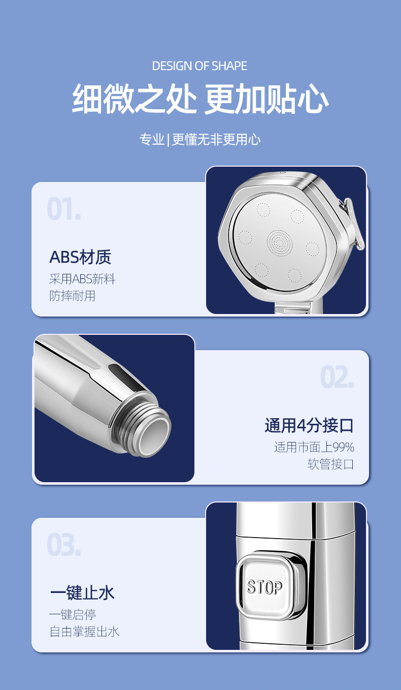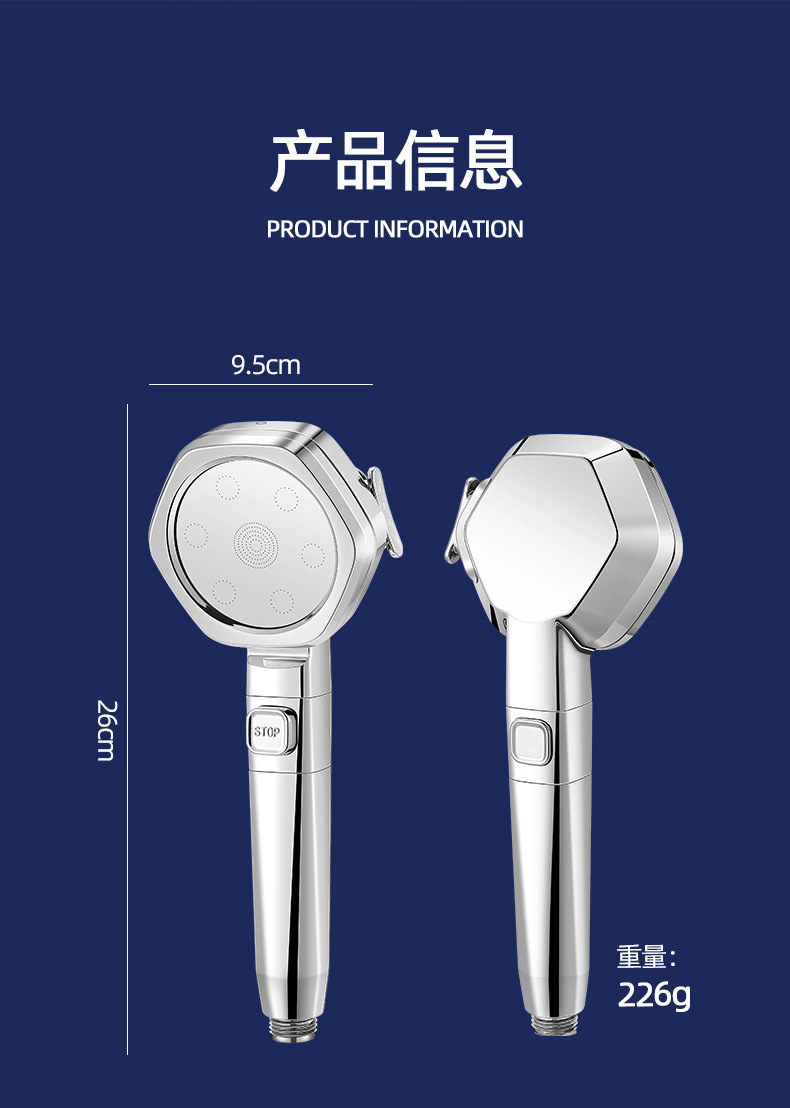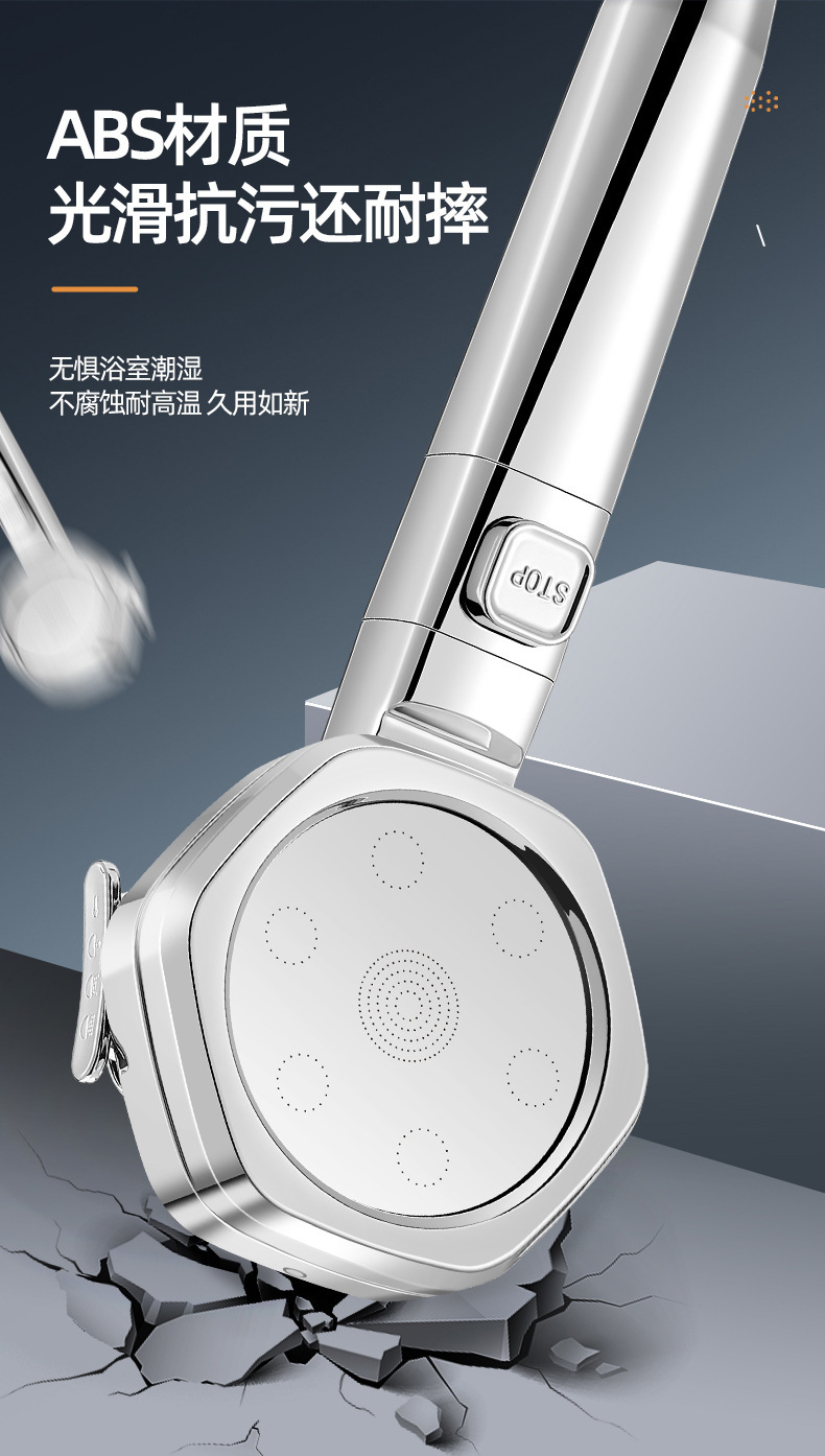 Hexagonal Handheld Supercharged Water-Saving Shower Head One-Click Water Stop Shower Head Nozzle Four-Speed Shower Head Shower Head 中文版