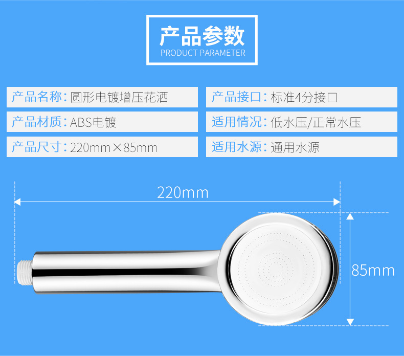 Wald Thin Plating Shower Supercharged Water-Saving Shower Head Set Handheld Nozzle Removable and Washable Shower Head