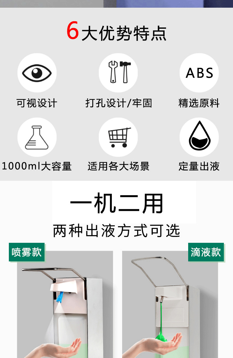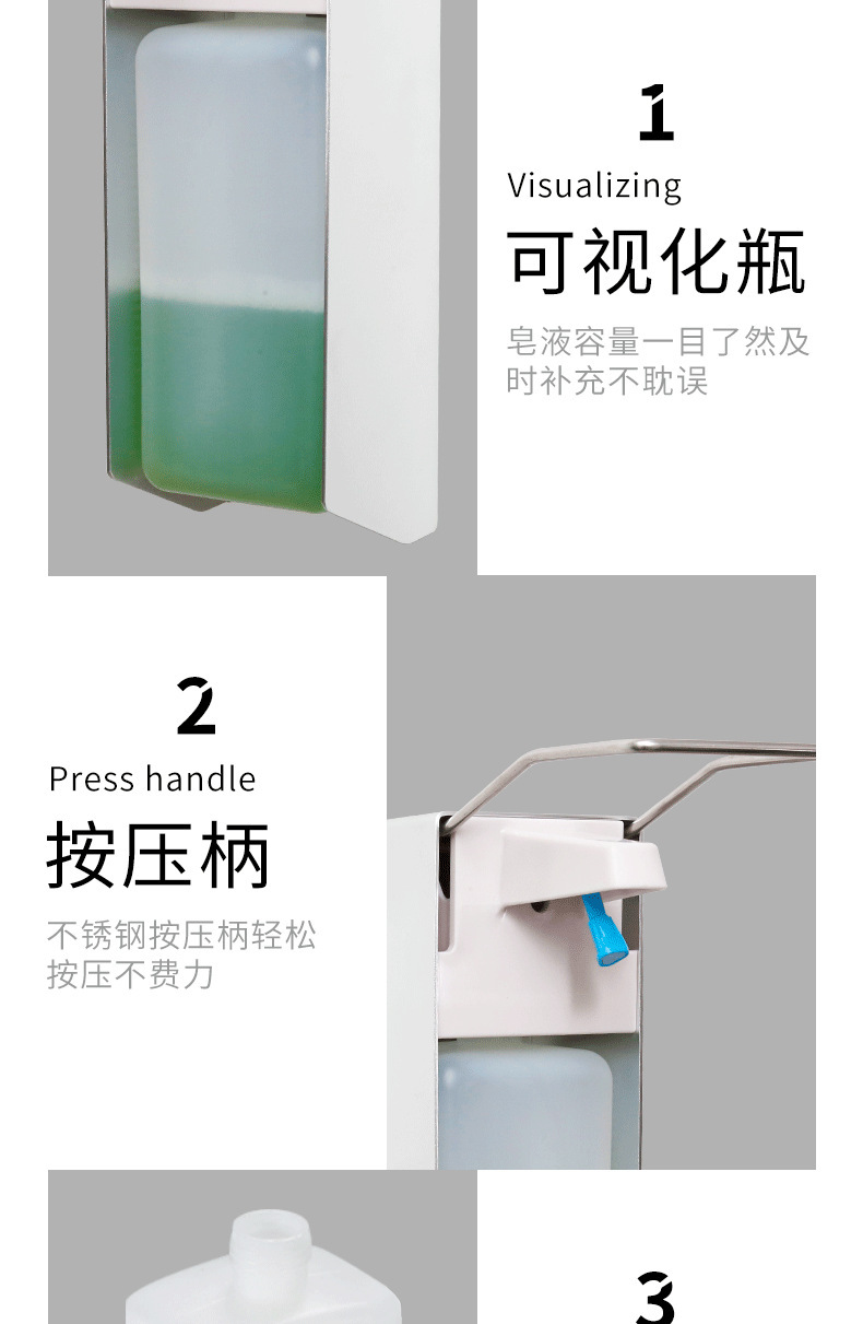 Cross-Border Manual Elbow Pressure Soap Dispenser Wall-Mounted Stainless Steel Soap Dispenser Press Soap Dispenser Mobile Phone Sannitizer Replacement Bottle