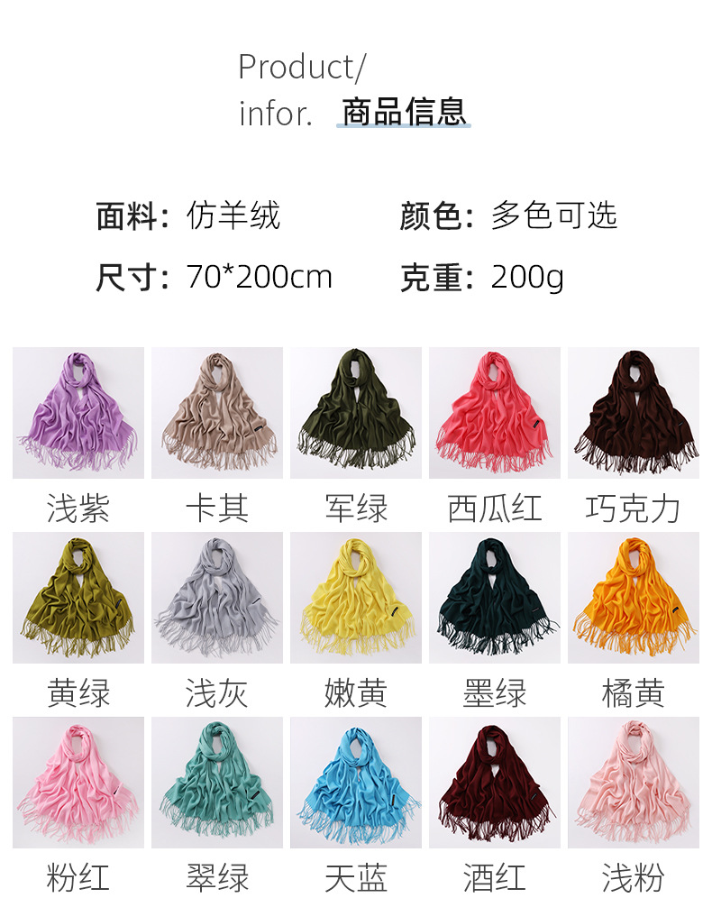 Autumn and Winter Multiple Solid Color Artificial Cashmere Scarf Women's Single Color Thick Warm Tassel Shawl Scarf Red Scarf Hair Generation