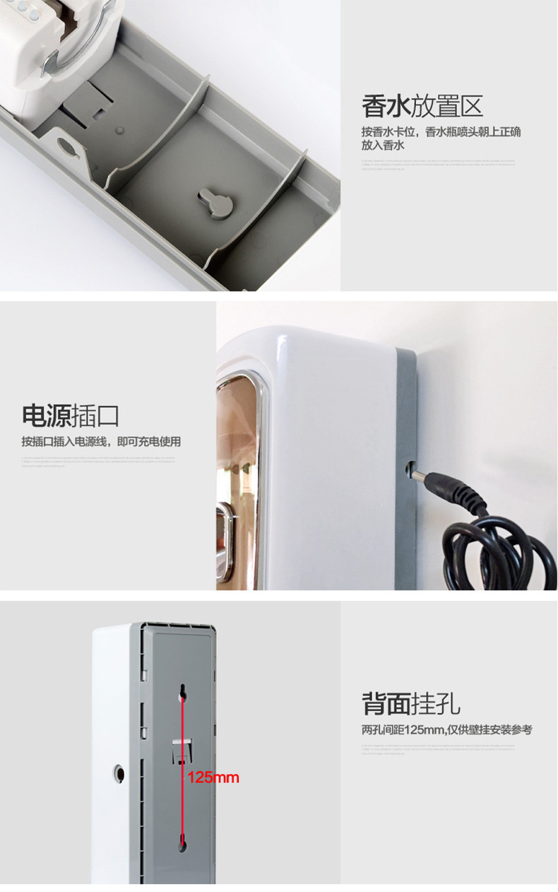 Fully Automatic Aerosol Dispenser Smart Timing Aroma Diffuser Wall-Mounted Deodorant Ultrasonic Aroma Diffuser Battery Fragrance Machine Hotel