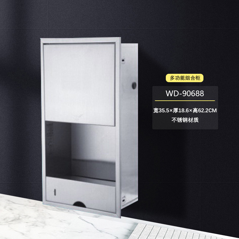 Wald Stainless Steel Multifunction Combined Cabinet Wall-Mounted Stainless Steel Tissue Box Stainless Steel Toilet Paper Holder Commercial