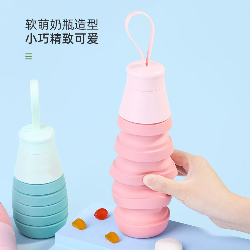 silicone foldable telescopic water cup portable cute student water bottle outdoor sports bottle silicone bottle small gift